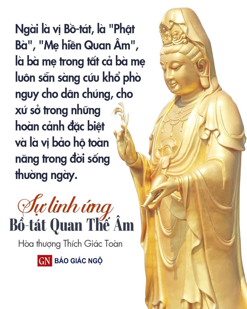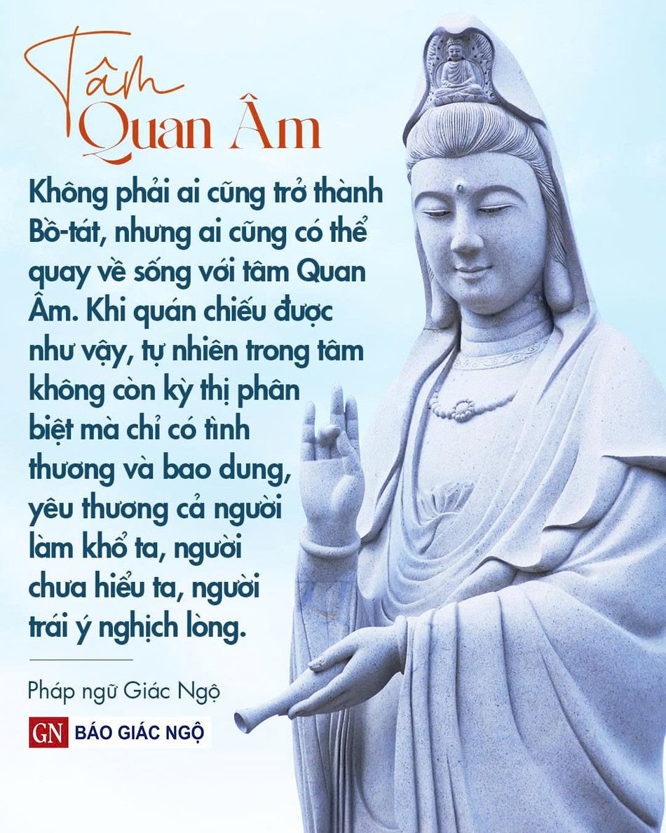 Nhân ngày vía của Ngài, 19-9 âm lịch, Giác Ngộ online giới thiệu cùng bạn đọc các pháp ngữ liên quan tới vị Bồ-tát có thể nói là gần gũi nhất trong tín ngưỡng đối với số đông, để sống thương yêu và chia sẻ làm cho cuộc đời bớt khổ, thêm vui.