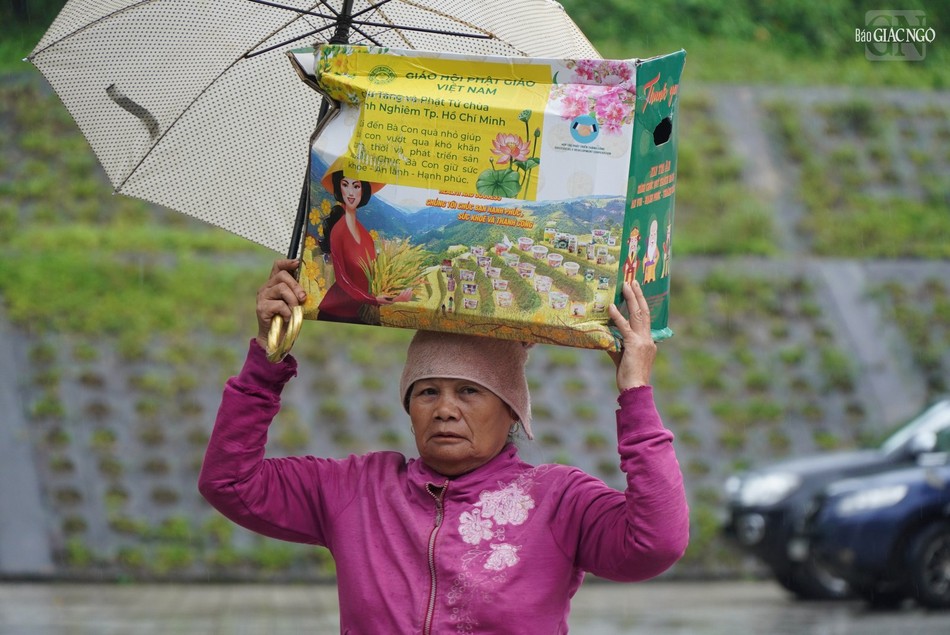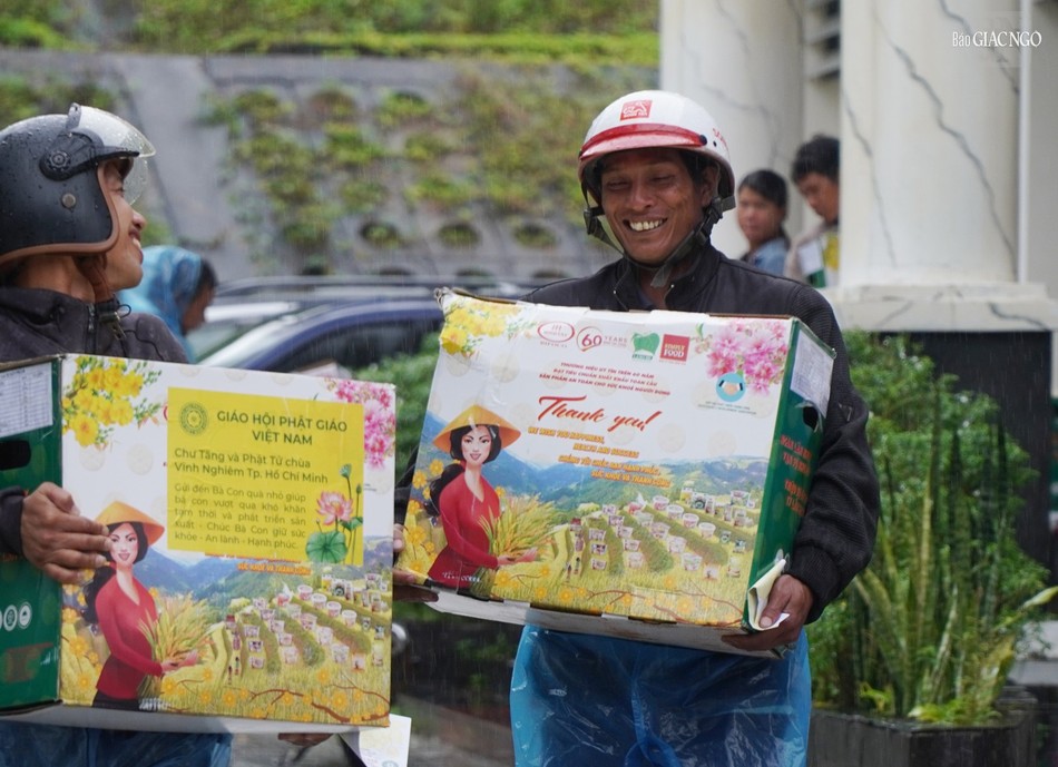 Theo đó được sự chỉ đạo của TƯGH và dưới sự hướng dẫn của Thượng tọa Thích Thanh Phong, Phó Chủ tịch Hội đồng Trị sự, Trưởng ban Kinh tế - Tài chính T.Ư, Phó ban kiêm Trưởng ban Từ thiện xã hội Phật giáo TP.HCM, chư vị thành viên Ban Kinh tế - Tài chính T.Ư, Ban Từ thiện xã hội Phật giáo TP.HCM, chư Tăng Ni TP.HCM kết hợp nhóm Chia sẻ Sharing của bà Mai Thị Hạnh - phu nhân nguyên Chủ tịch nước Trương Tấn Sang, nhóm Mãi yêu thương; cùng đại diện các doanh nghiệp, các nhà hảo tâm tham gia đã trao tặng 2.000 phần quà đến bà con bị mưa lũ và bão số 13 tại Huế, Đà Nẵng và Quảng Ngãi. Mỗi phần quà gồm có 1 triệu tiền mặt và quà là nhu yếu phẩm có giá trị 500 ngàn đồng.
