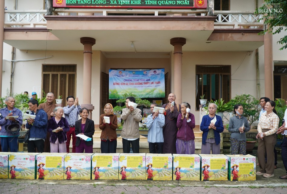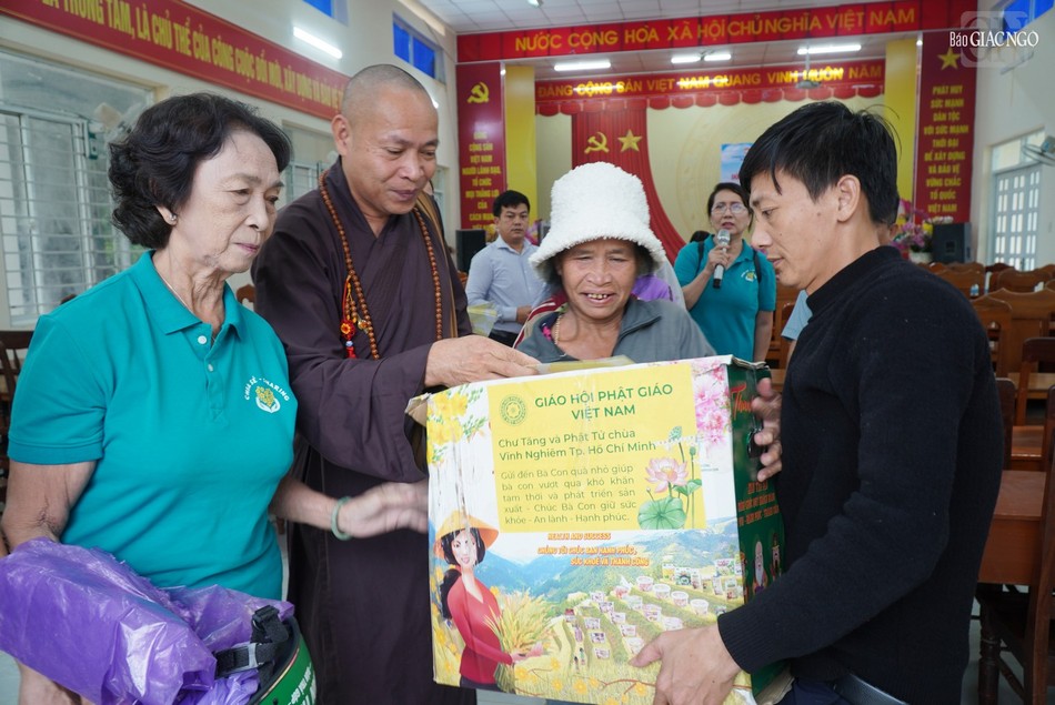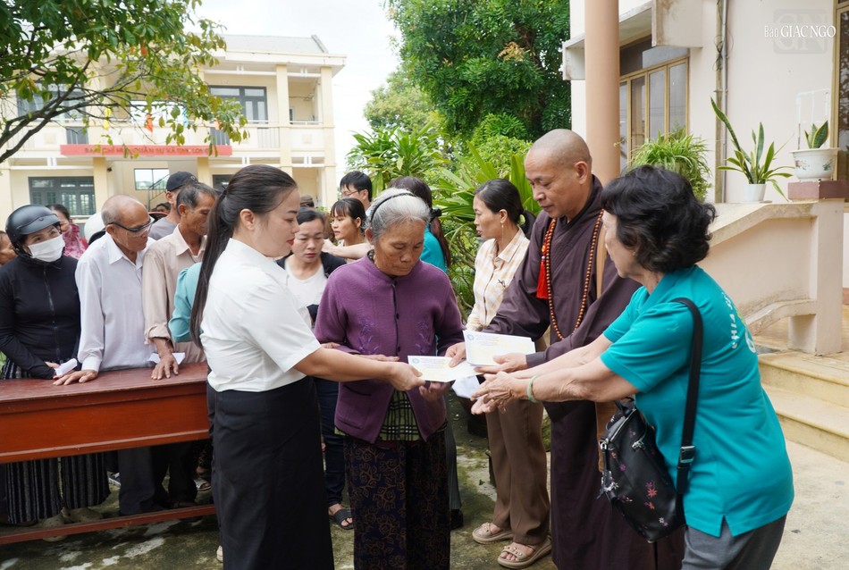 Đại đức Chánh Thư ký Ban Kinh tế - Tài chính T.Ư cho biết thêm, trước đó, đoàn GHPGVN cũng đã trao tặng 7.000 phần quà đến người dân các tỉnh Cao Bằng, Thái Nguyên, Bắc Ninh, Thanh Hóa, Nghệ An, Hà Tĩnh và Quảng Trị bị ảnh hưởng bởi cơn bão số 10 và 11.