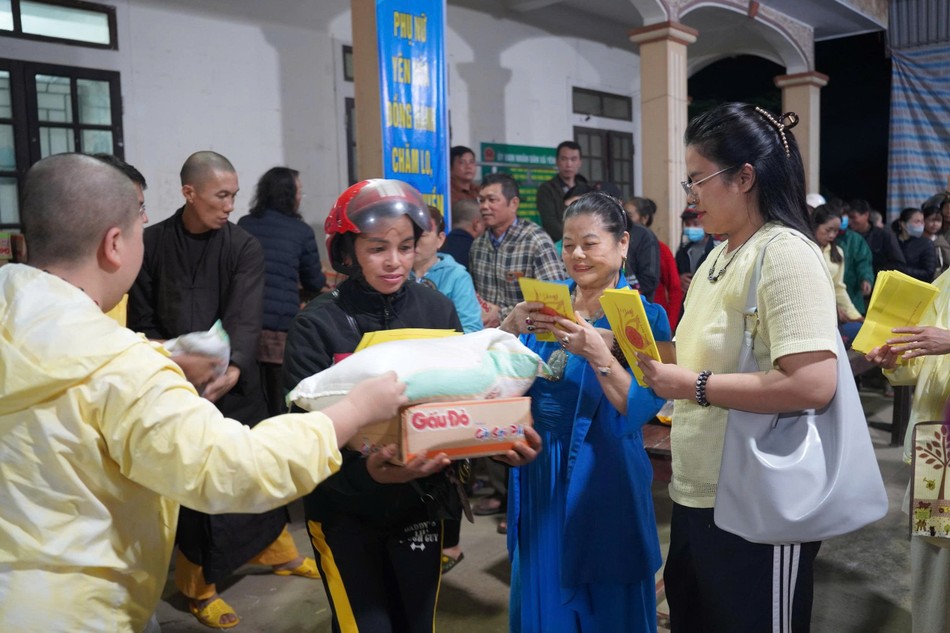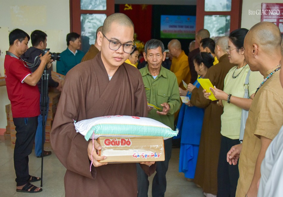 "Hành trình mang yêu thương của Tăng Ni, Phật tử khắp miền đất nước hôm nay dừng chân tại 2 tỉnh Thanh Hóa và Nghệ An, chúng tôi sẽ trao tặng 2.000 phần quà đến người dân chịu thiệt hại do bão lũ nhằm chia sẻ những khó khăn, giúp mọi người sớm quay trở lại cuộc sống bình thường.", Thượng tọa Thích Tuệ Hải chia sẻ.