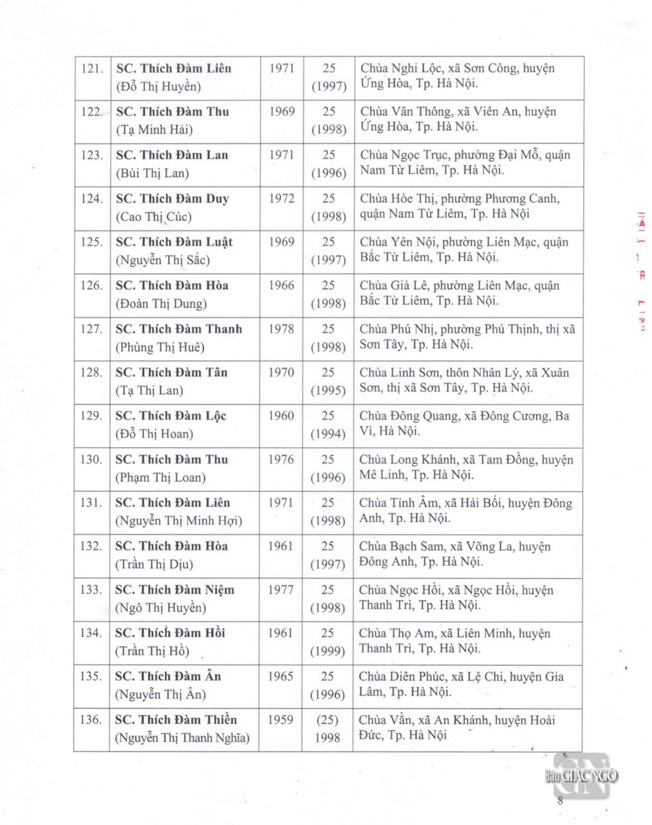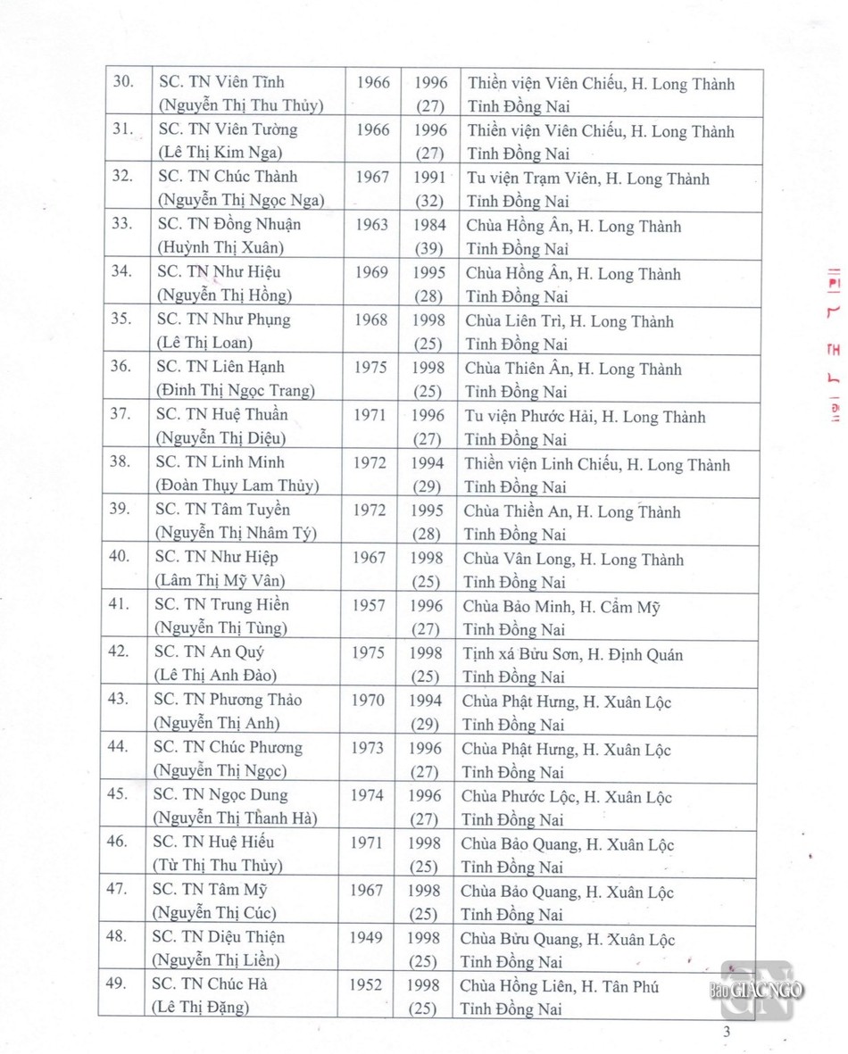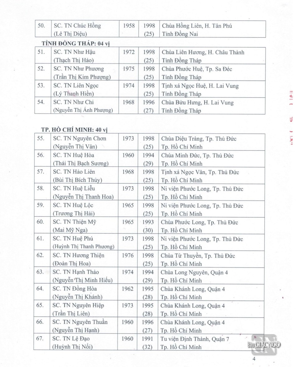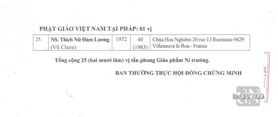 GNO - Thông tin từ Văn phòng Đức Pháp chủ GHPGVN, căn cứ Nghị quyết Hội nghị kỳ III của Ban Thường trực Hội đồng Chứng minh nhiệm kỳ 2022-2027, Đức Pháp chủ đã ban hành Giáo chỉ số 23/GC-HĐCM, ngày 4-4-2024, tấn phong Giáo phẩm cho 317 vị Tăng Ni.