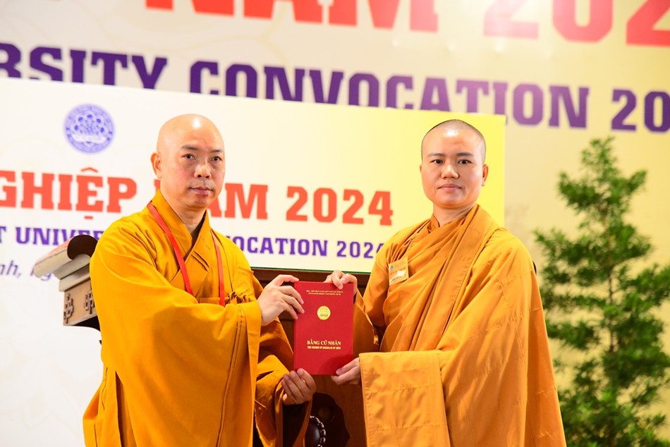 Thay mặt Hội đồng Điều hành Học viện, Thượng tọa Thích Quang Thạnh công bố quyết định tốt nghiệp năm 2024. Theo đó, có 399 Tăng, Ni và cư sĩ đủ điều kiện tốt nghiệp, trong đó: 30 Tăng Ni tốt nghiệp thạc sĩ; 359 Tăng, Ni và cư sĩ tốt nghiệp cử nhân (khoa Pali: 24 vị, Phật học Sanskrit: 5 vị, Triết học Phật giáo: 36 vị, Lịch sử Phật giáo: 23 vị, Hoằng pháp: 70 vị, Phật giáo Việt Nam: 60 vị, Trung văn: 21 vị, Anh văn Phật pháp: 37 vị, Luật học: 19 vị, Phiên dịch Phật giáo Hán truyền: 10 vị, Công tác xã hội: 40 vị, Đào tạo Phật học từ xa: 14 vị) và 10 Tăng, Ni hệ Cao đẳng liên thông.