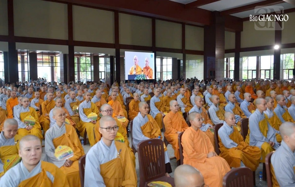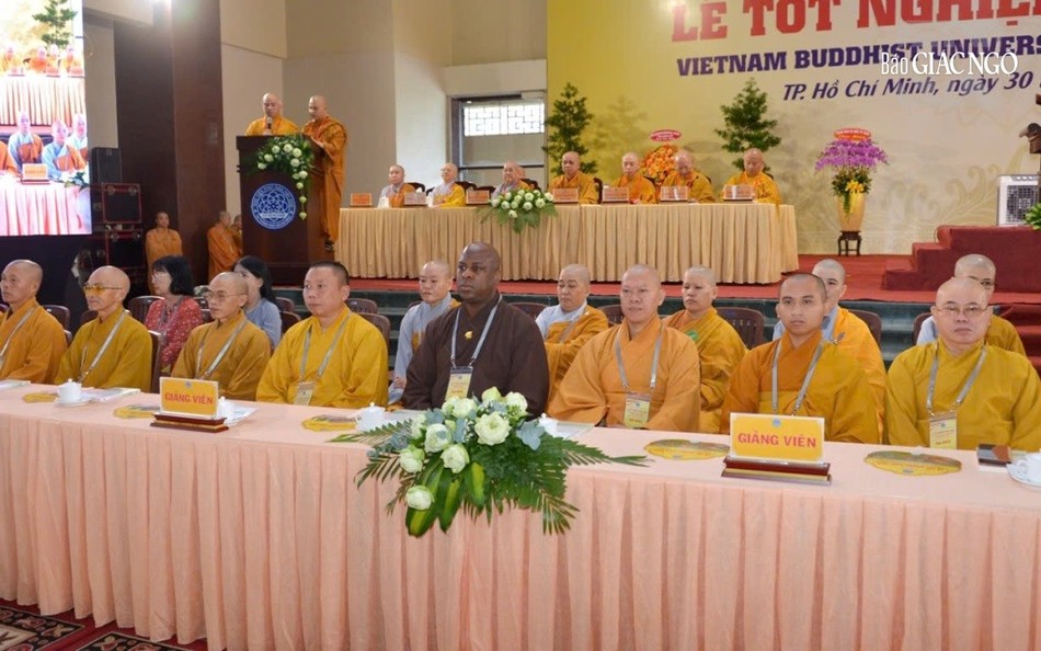 Ban đạo từ, Đại lão Hòa thượng Viện trưởng đã có lời chúc mừng đến các giảng viên, chư vị bổn sư, y chỉ sư, phụ mẫu đã hoàn thành trọng trách làm thầy, làm cha mẹ đã nuôi dưỡng, truyền trao giới thân, huệ mạng và kiến thức đến các Tăng Ni, cư sĩ để có thể theo đuổi con đường học vấn, được tốt nghiệp thạc sĩ và cử nhân Phật học.