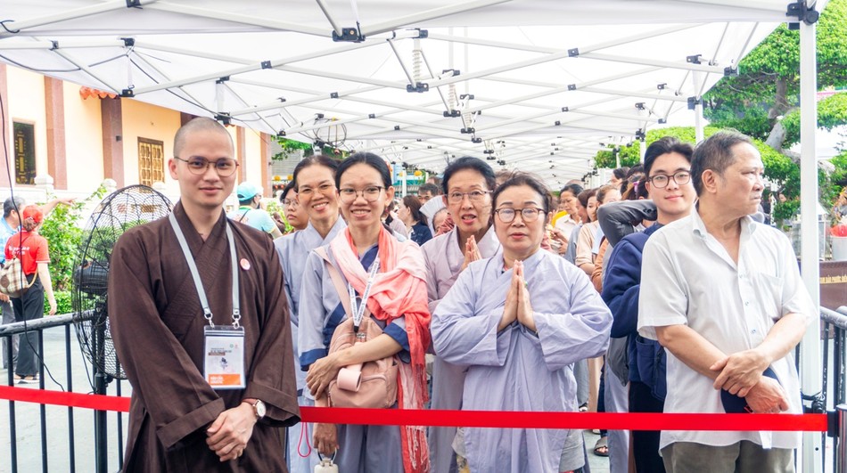 “Tuy số lượng đông, nhưng nhờ sự phân luồng phù hợp, cùng với đó là điều tiết phân bổ các phái đoàn đăng ký trực tuyến trải đều thời gian nên dòng người liên tục, cộng với sự phối hợp nhịp nhàng giữa các bộ phận, lực lượng tham gia, nên cho đến nay mọi việc giữ sự ổn định.”, Thượng tọa Thích Tâm Hải, người được Giáo hội giao trách nhiệm điều phối tổ chức sự kiện Chiêm bái xá-lợi Trái tim Bồ-tát Thích Quảng Đức tại Việt Nam Quốc Tự cho biết.