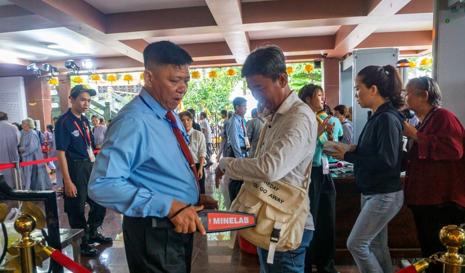 Cổng từ kiểm tra an ninh trước khi vào lễ đường chiêm bái |