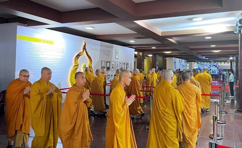 Lễ chiêm bái dành cho tất cả mọi người (đăng ký trực tuyến bằng cách quét QR code, hotline của Ban Tổ chức và trực tiếp tại Việt Nam Quốc Tự) sẽ tiếp tục cho đến 20 giờ tối mai, 10-5-2025.