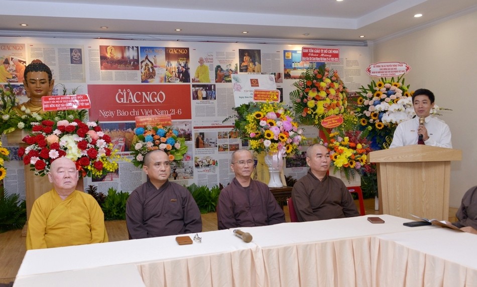 Thượng tọa Thích Chúc Phú, Phó Thư ký tòa soạn Báo Giác Ngộ phát biểu chào mừng. Theo đó, Thượng tọa tâm tình, một năm Báo Giác Ngộ có hai buổi họp mặt thân tình, ngày Cách mạng Báo chí Việt Nam và kỷ niệm ngày thành lập Báo Giác Ngộ.