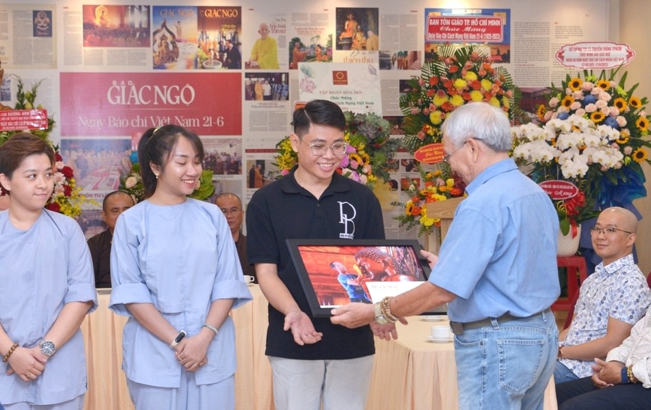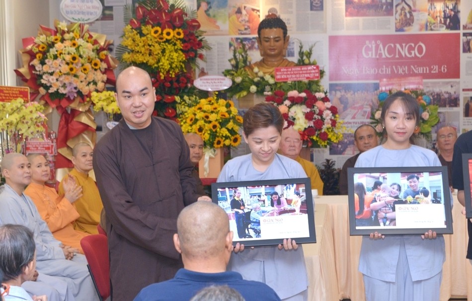 Tại buổi họp mặt này, Câu lạc bộ Phóng viên - Cộng tác viên Báo Giác Ngộ trao giải cho các tác giả đoạt giải cuộc thi ảnh online với chủ đề “Con về với Phật” trong mùa Phật đản Phật lịch 2567 vừa rồi.