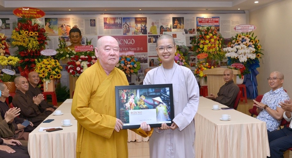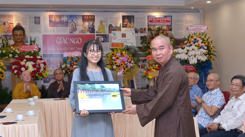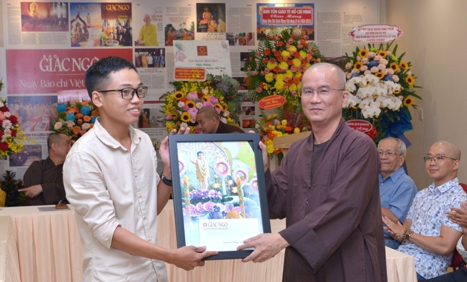 Hòa thượng đã có lời thăm hỏi, chúc mừng đến Thượng tọa Tổng Biên tập và tập thể tòa soạn, thăm hỏi đến các nhà nghiên cứu, các cộng tác viên và nhân viên Báo Giác Ngộ. Hòa thượng cũng đã gửi bài thơ đến tặng Thượng tọa Tổng Biên tập và có lời mời dùng tiệc chay thân mật nhân ngày vui của lĩnh vực báo chí, trong đó có Báo Giác Ngộ.