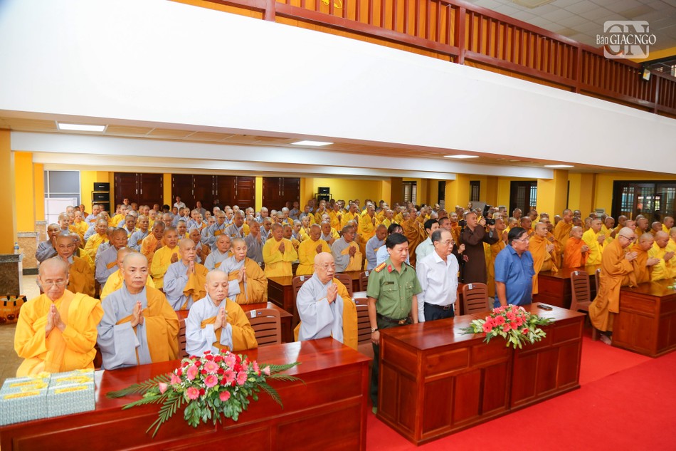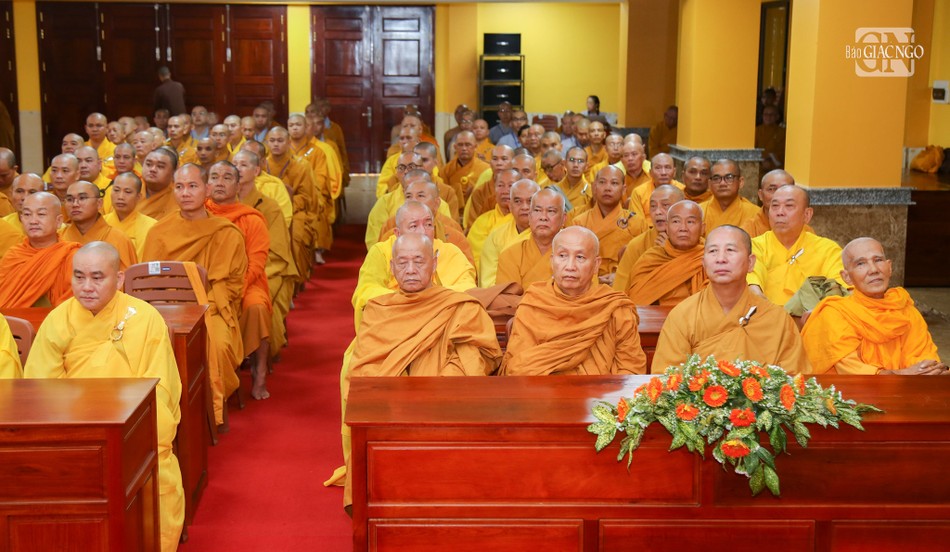Tại buổi lễ, Thượng tọa Thích Viên Quang, Phó ban kiêm Chánh Thư ký Ban Trị sự GHPGVN tỉnh An Giang thay mặt Ban Kiến đàn báo cáo công tác tổ chức trong những ngày qua.