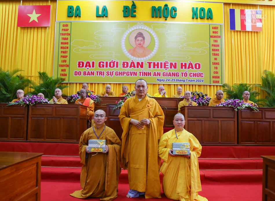 Dịp này, Ban Kiến đàn trao tặng những phần thưởng đến các giới tử Tỳ-kheo, Tỳ-kheo-ni, Thức-xoa, Sa-di và Sa-di-ni xuất sắc vượt qua kỳ thi khảo hạch đạt kết quả cao.