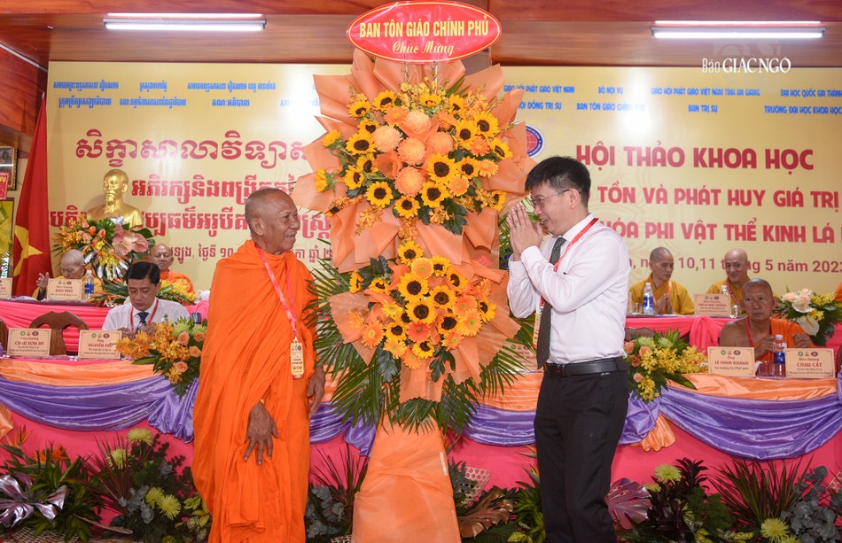 Ban đạo từ chứng minh, Trưởng lão Hòa thượng Chau Ty bày tỏ kỳ vọng, hội thảo sẽ làm rõ thêm giá trị, giải pháp bảo tồn và phát huy kinh lá buông. Trong đó, chú trọng đến lịch sử hình thành, cách thức chế tác và nghệ thuật khắc chữ; chú trọng đến nội dung phong phú trong kinh lá.