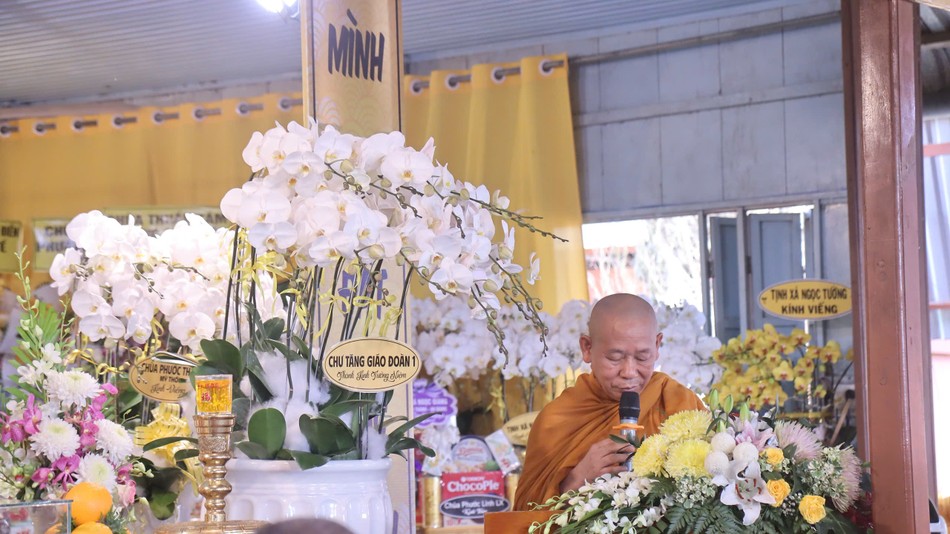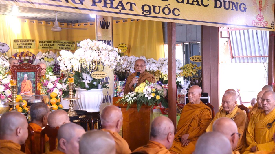 Thay mặt Hội đồng Chứng minh GHPGVN, Trưởng lão Thích Huệ Tài đã tuyên đọc điếu văn tri ân những công đức to lớn của cố Trưởng lão Hòa thượng Giác Dũng, người đã cống hiến cả cuộc đời cho sự phát triển của Phật giáo tỉnh nhà nói chung và Phật giáo Khất sĩ nói riêng.