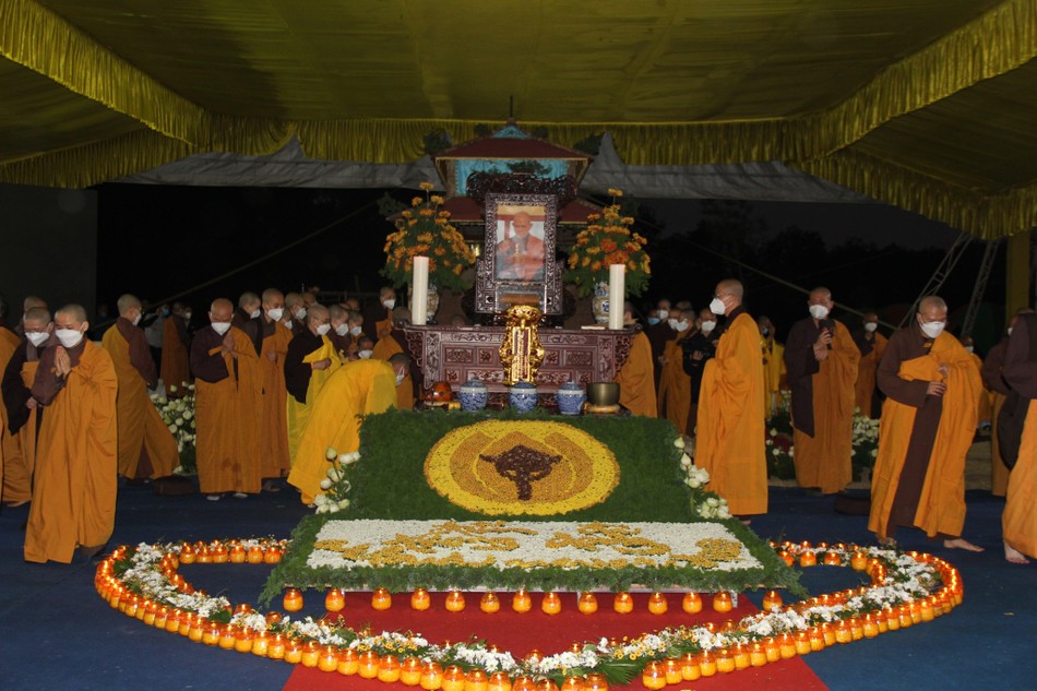 Trước đó, ngày 29-1, kim quan Thiền sư Thích Nhất Hạnh được trà-tỳ nơi đài hỏa táng thủ công ở Công viên nghĩa Vĩnh Hằng vào lúc khoảng 10 giờ sáng, và lửa ngọn cháy liên tục suốt 16 tiếng đồng hồ, chưa kể thời gian dừng lửa ngọn, chờ nguội.