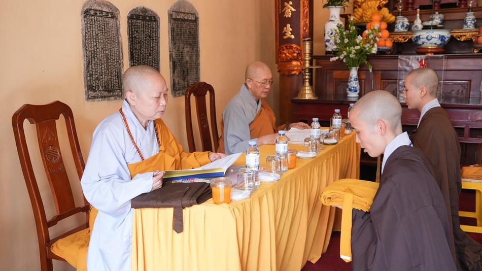Tại đàn giới Tỳ-kheo-ni, Ban Kiến đàn cung thỉnh Ni trưởng Thích Đàm Hằng làm Đàn đầu Hòa thượng Ni; Ni trưởng Thích Đàm Thành làm Yết-ma A-xà-lê và Ni trưởng Thích Đàm Lan làm Giáo thọ A-xà-lê cùng 7 vị Tôn chứng truyền bản pháp Yết-ma cho 32 giới tử Thức-xoa-ma-na cầu thọ giới Tỳ-kheo-ni.