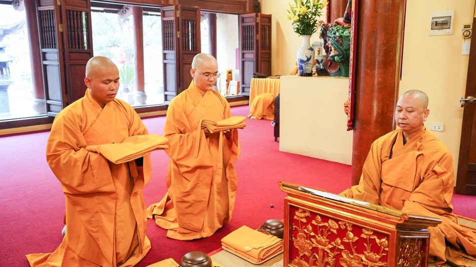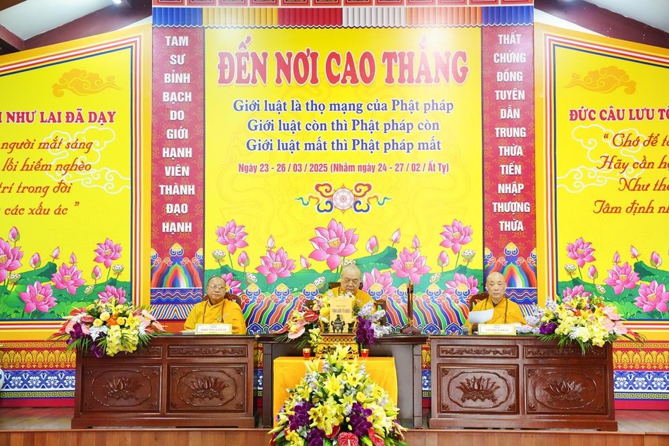 Theo đó, đúng 7 giờ, ngày 25-3, Đại giới đàn được trang nghiêm cử hành theo nghi thức thiền môn miền Bắc, hội đủ 3 yếu tố: Đàn tràng trang nghiêm - Giới sư thanh tịnh - Giới tử chí thành.