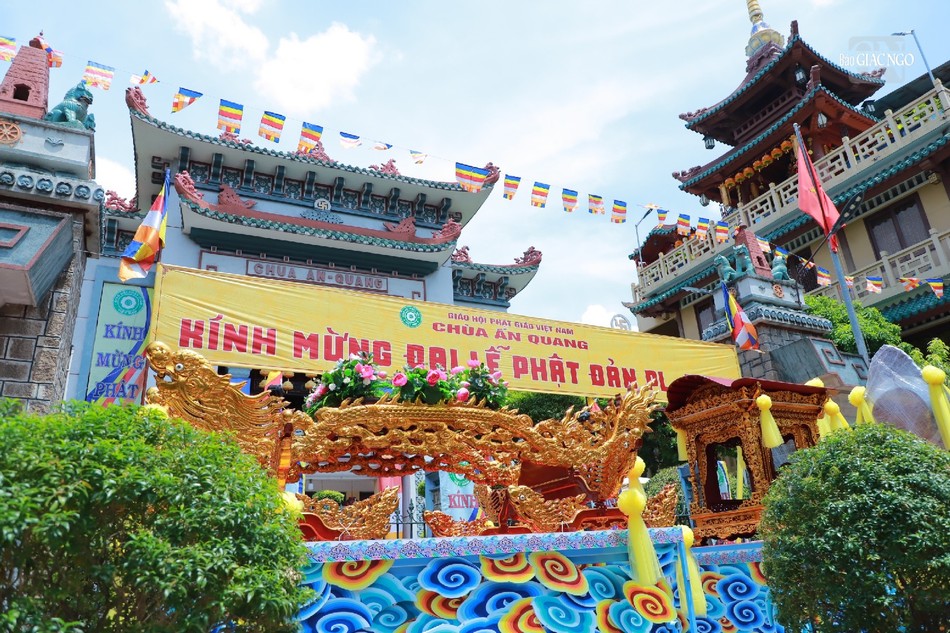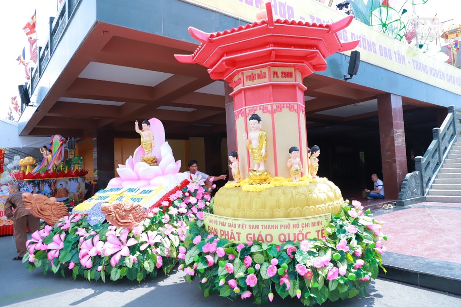Đúng 20 giờ, đoàn cung rước kiệu hoa Thái tử Tất Đạt Đa đản sinh sẽ khởi hành từ tổ đình Ấn Quang đến lễ đài chính - Việt Nam Quốc Tự theo lộ trình lễ rước Phật: Tập trung tại đường Sư Vạn Hạnh (tổ đình Ấn Quang) - Ngô Gia Tự - Lê Hồng Phong - đường 3/2 (cổng chính Việt Nam Quốc Tự). Sau khi đoàn đến Việt Nam Quốc Tự sẽ cử hành nghi thức Tắm Phật truyền thống.
