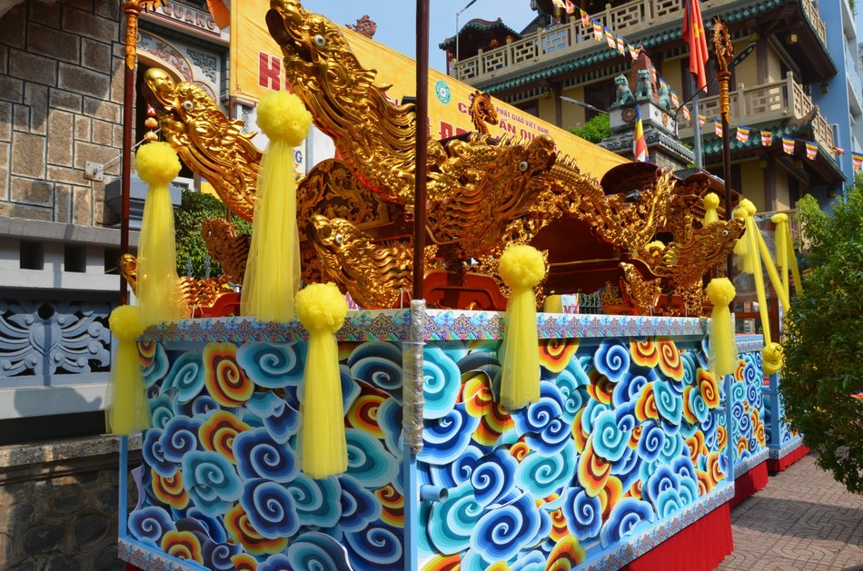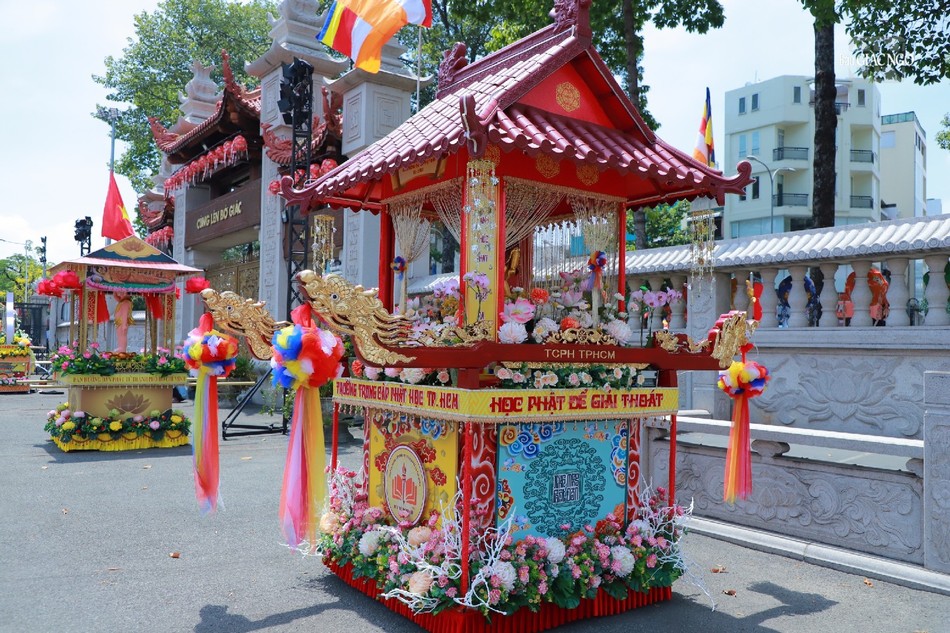 Các kiệu hoa sẽ tập kết tại sân Việt Nam Quốc Tự, từ tối mùng 8-4-Giáp Thìn đến hết ngày 15-4-Giáp Thìn để chư Tăng Ni, đồng bào Phật tử chiêm ngưỡng.