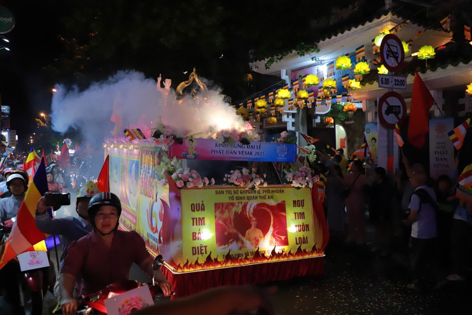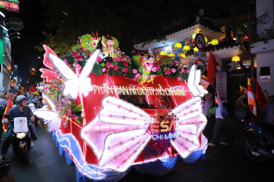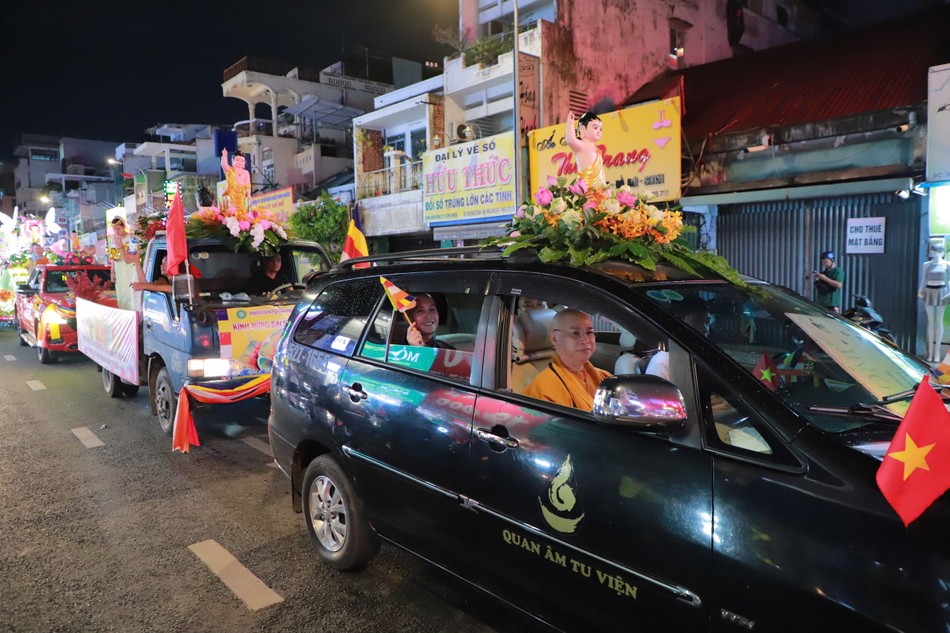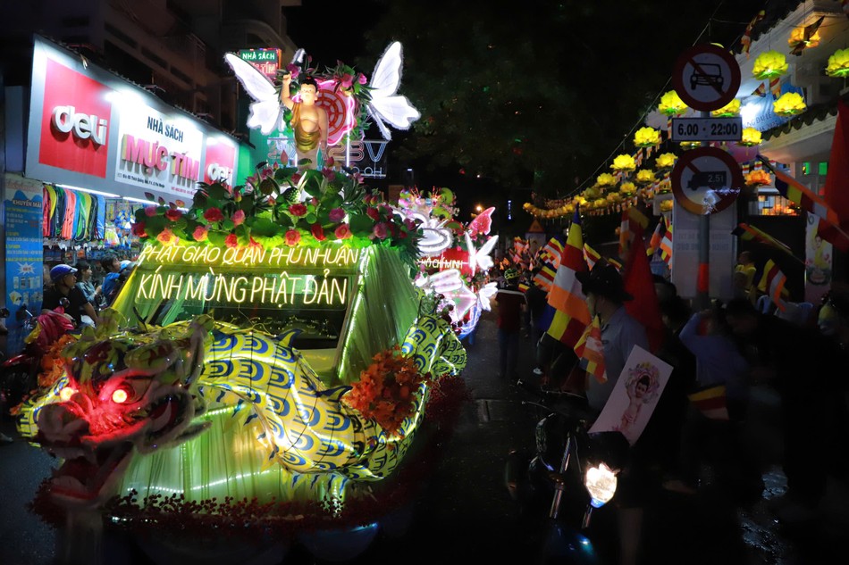 Theo đó, đoàn xe hoa Phật giáo Q.Phú Nhuận có 4 xe hoa lớn và hơn 50 xe gắn máy, khởi hành từ lễ đài Phật đản quận - Quan Âm tu viện, di chuyển qua các cung đường Hoa Phượng, Phan Xích Long, Phan Đăng Lưu, Hoàng Văn Thụ, Trương Quốc Dung, Nguyễn Văn Trỗi, Huỳnh Văn Bánh, Phan Đình Phùng, Nguyễn Kiệm, Thích Quảng Đức, Nguyễn Công Hoan, Trường Sa…