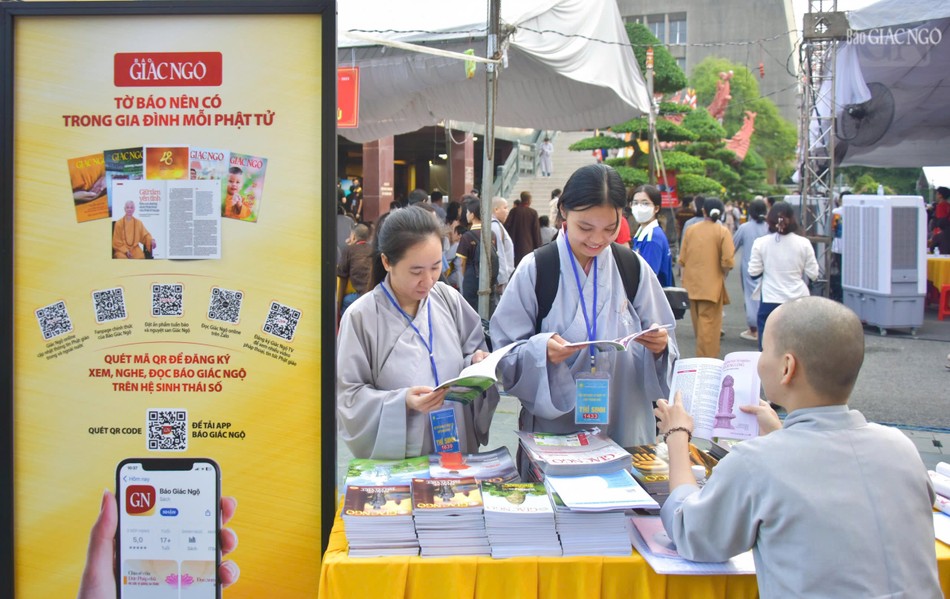 GNO - Sáng nay, 22-12, nhân Hội thi giáo lý Phật tử cấp Thành phố diễn ra tại Việt Nam Quốc Tự với trên 4.400 Phật tử TP.HCM tham gia, Phòng Phát hành Báo Giác Ngộ đã tổ chức trao tặng 3.000 tờ tuần báo đến Phật tử tham gia hội thi.