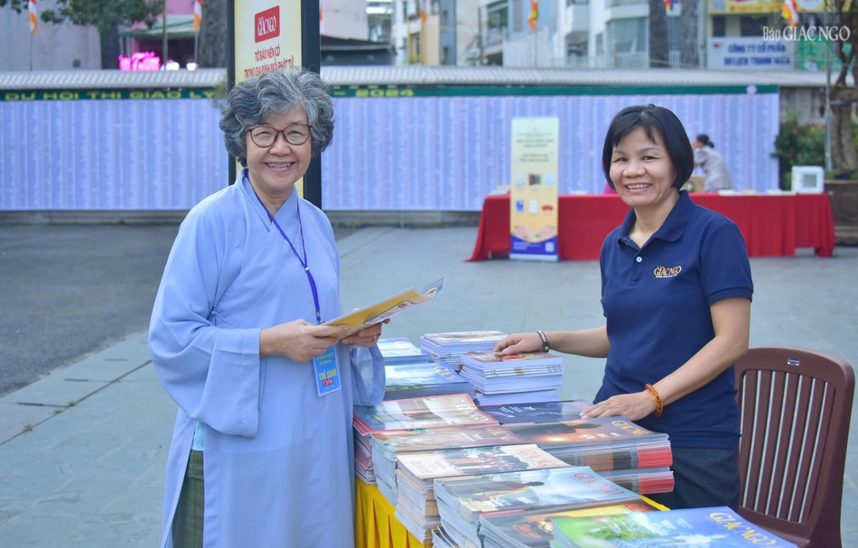 Theo đó, được sự cho phép của Hòa thượng Trưởng ban Trị sự GHPGVN TP.HCM, Ban Tổ chức Hội thi giáo lý Phật tử cấp Thành phố, sáng nay, Phòng phát hành Báo Giác Ngộ đã trao tặng hơn 3.000 tờ báo gồm các ấn phẩm tuần san, nguyệt san đến Phật tử tham dự hội thi tại Việt Nam Quốc Tự.
