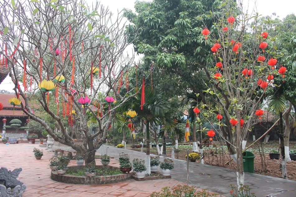Đến các ngôi chùa trong những ngày này sẽ được chiêm ngưỡng những sắc màu tươi mới, từ những dải cờ Phật giáo treo giăng khắp nơi, những tấm biển "Mừng Xuân Di Lặc" trên cổng chùa, đến những cây nêu treo cành phướn... Đặc biệt, hoa nở khoe sắc thắm trong sân chùa, vườn chùa, trước bàn thờ Tam bảo.