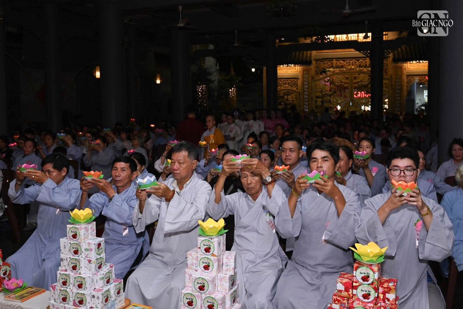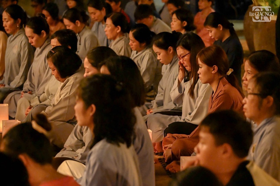 Trong không khí thiêng liêng, đại chúng đã lắng đọng tâm tư, tụng kinh Vu lan, thắp sáng những ngọn nến nguyện cầu cho cha mẹ hiện tiền được an lạc, cha mẹ nhiều đời nhiều kiếp quá vãng được siêu sanh Tịnh độ.
