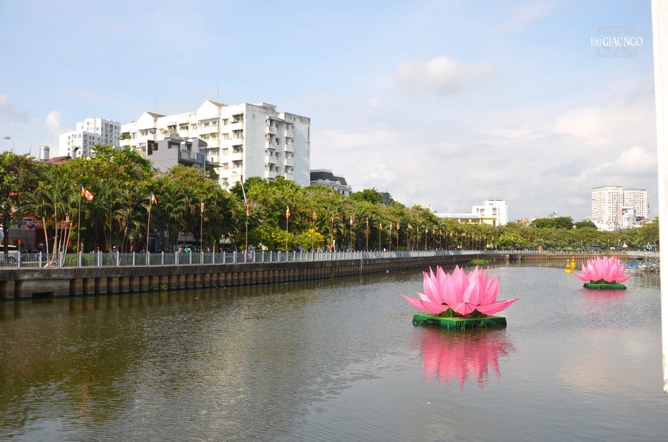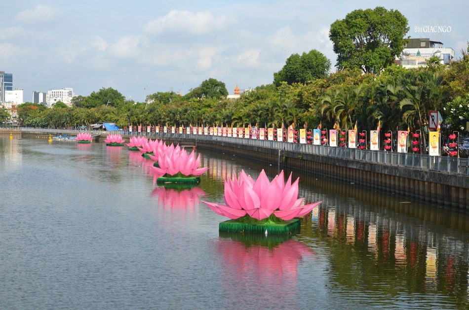 * 7 đóa sen hồng trên dòng kênh Nhiêu Lộc là điểm nhấn trong Đại lễ Phật đản Phật lịch 2568. Bên cạnh đó, những áp phích, cờ, lồng đèn được treo dọc 2 bên kênh Nhiêu Lộc và trên các nẻo đường tạo nên không khí hân hoan, đón mừng mùa Phật đản đang về: