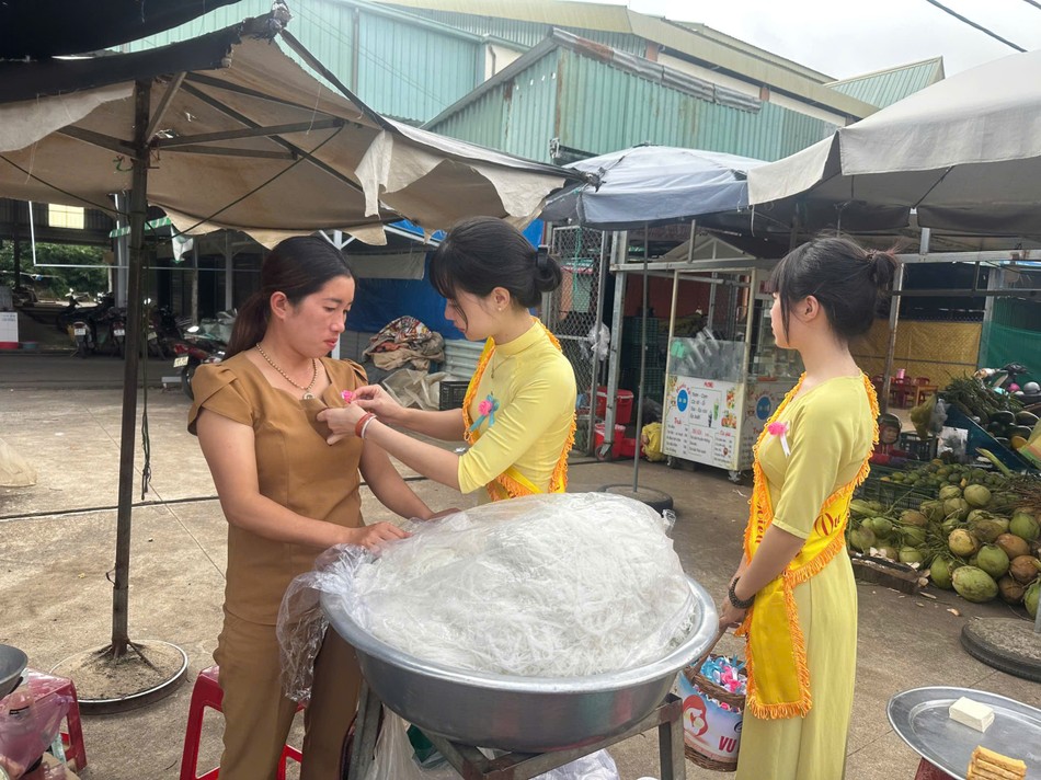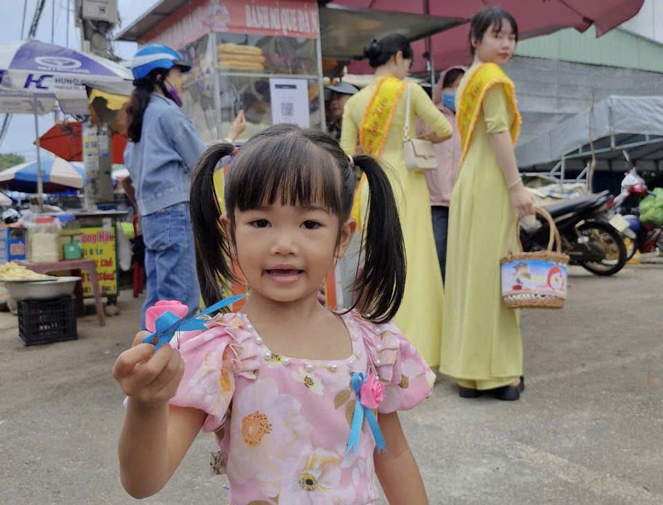 Những bông hoa hồng được cài lên áo các chị, các mẹ đang làm việc, lao động tại chợ Gia Nghĩa nhân mùa Vu lan - Báo hiếu như gởi trọn tấm lòng thơm thảo, hiếu kính.