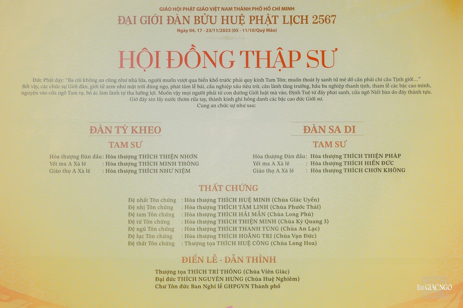 GNO - Giới đài viện Cam lồ - Phương đẳng (gọi tắt là Giới đài viện Huệ Nghiêm) là nơi sẽ truyền giới Tỳ-kheo và Sa-di Bắc tông thuộc Đại giới đàn Bửu Huệ Phật lịch 2567 do Ban Trị sự GHPGVN TP.HCM tổ chức, sẽ khai mạc vào sáng mai 21-11-2023.