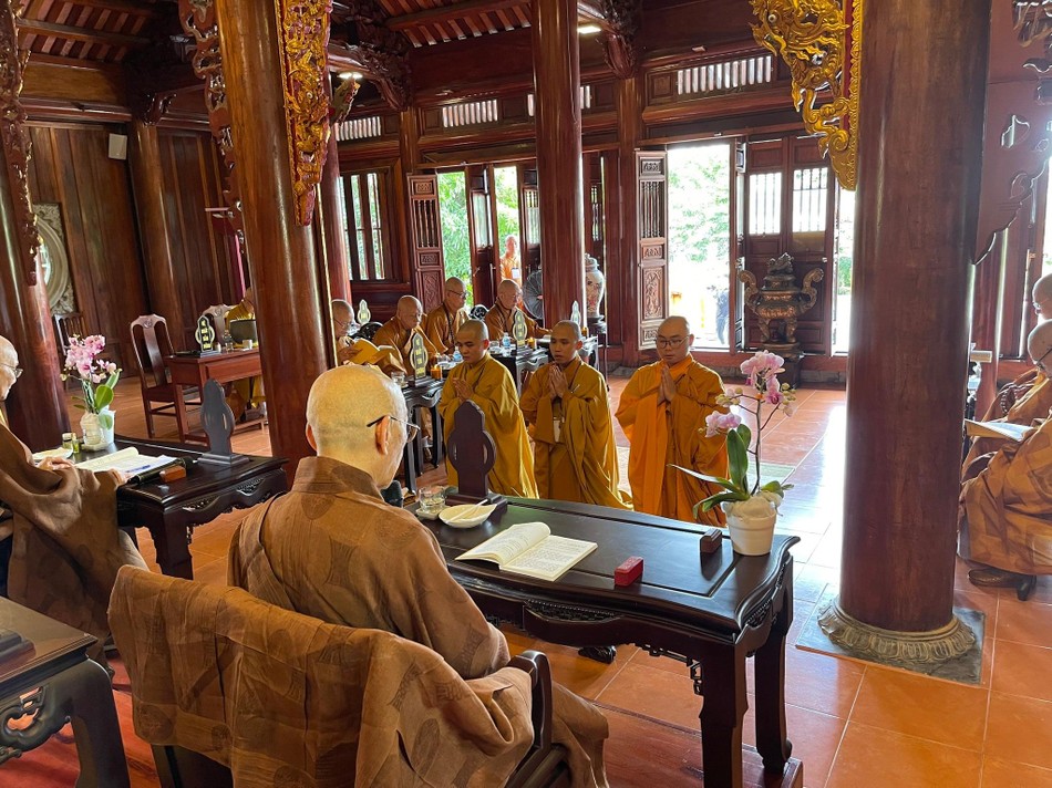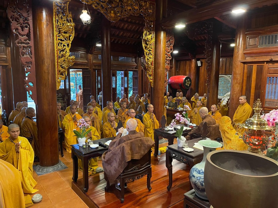 Theo đó, chư giới sư Đại Giới đàn Trí Nghiêm Phật lịch 2566 đã tấn đàn truyền giới đến giới tử xuất gia và giới tử tại gia tại hai giới trường chùa Long Sơn và Ni viện Diệu Quang.
