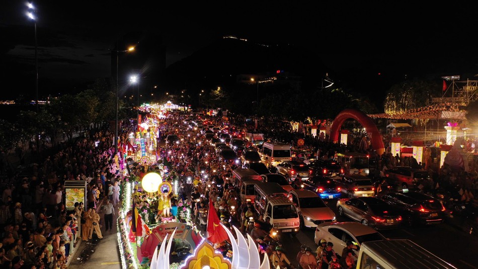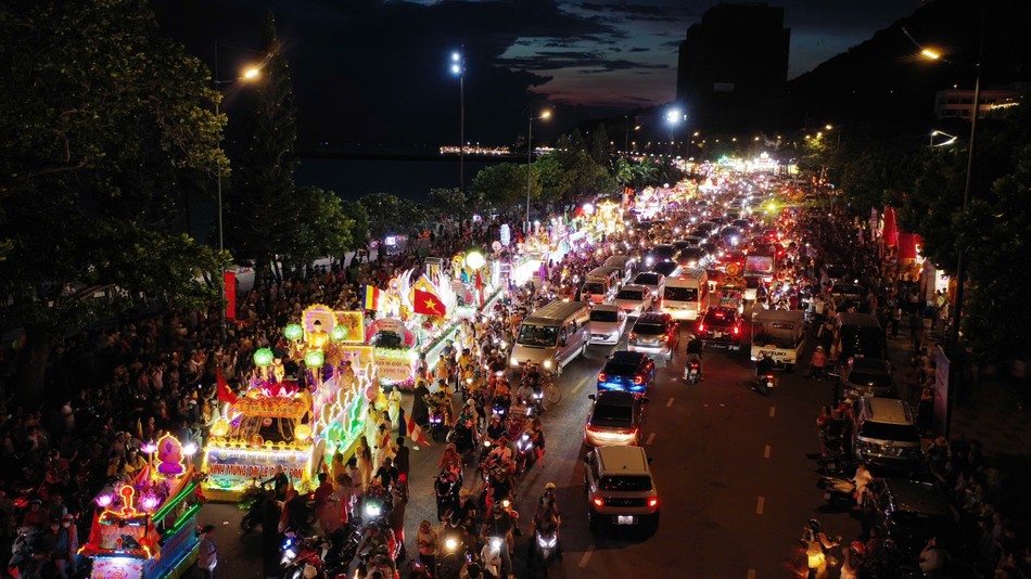 Tiếp đó 18 giờ 30, sau khóa lễ cầu nguyện, gần 40 chiếc xe hoa rực rỡ sắc màu của các huyện, thành phố lần lượt theo thứ tự sắp xếp của Ban Tổ chức, diễu hành trên các cung đường thuộc TP.Vũng Tàu.