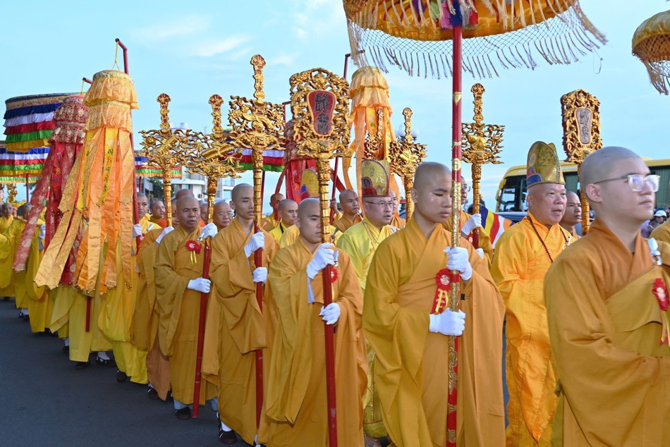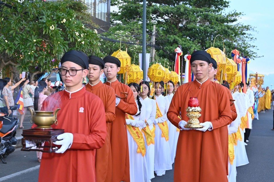 Đúng 17 giờ 30, chư tôn đức Ban Tổ chức, Ban Nghi lễ cử hành nghi thức niêm hương bạch Phật, cầu nguyện trước tôn tượng Đức Phật sơ sinh tại Văn phòng Ban Trị sự tỉnh. Sau đó, đoàn cung rước kim thân tôn tượng Đức Phật sơ sinh khởi hành từ chùa Từ Quang đến lễ đài chính của Phật giáo tỉnh kính mừng Phật đản Phật lịch 2569.