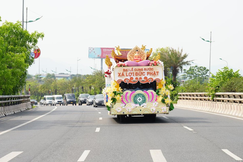 Đoàn xe cung rước xá-lợi Đức Phật trang nghiêm khởi hành từ sân bay Nội Bài, dẫn đầu là xe hoa rực rỡ, tiếp đến là xe tôn trí xá-lợi Phật, theo sau là xe của chư tôn đức và đại biểu hai nước. Đoàn di chuyển qua các tuyến đường của Thủ đô như cầu Nhật Tân, Võ Chí Công, Đào Tấn, Kim Mã, Lê Duẩn, Trần Nhân Tông, Trần Bình Trọng và Cung Văn hóa Hữu nghị Việt - Xô, kết thúc tại chùa Quán Sứ - trụ sở Trung ương GHPGVN.
