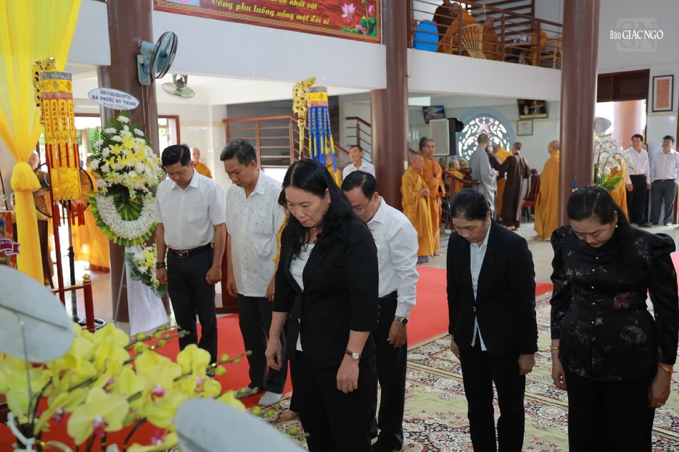 Chư tôn đức dâng hương tưởng niệm trước khi cung thỉnh kim quan Trưởng lão Hòa thượng Thích Thiện Tánh nhập bảo tháp