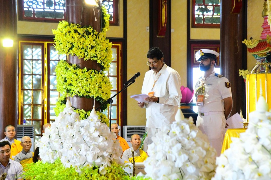 Xá-lợi Đức Phật sau hành trình tôn trí tại 9 tỉnh, thành phố, từ ngày 2-5 đến ngày 2-6-2025 để Tăng Ni, Phật tử, người dân Việt Nam đến đảnh lễ, chiêm bái, chư tôn đức GHPGVN đã tổ chức Lễ cung tiễn xá-lợi về lại Ấn Độ.