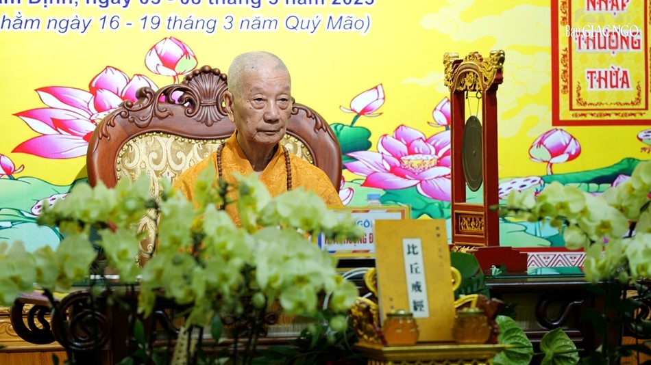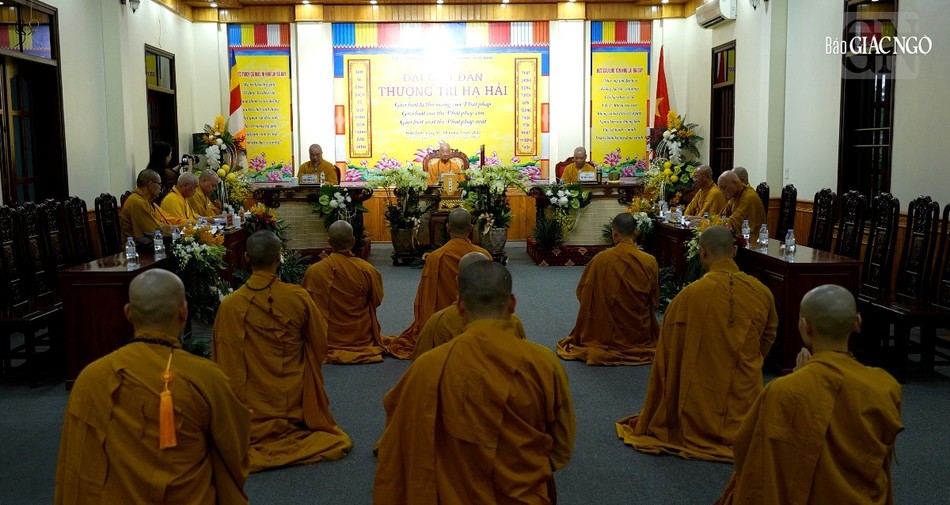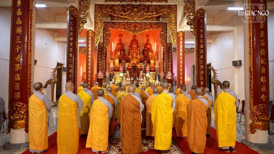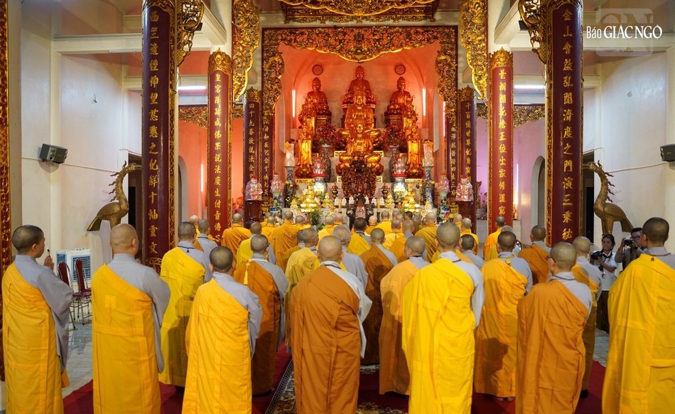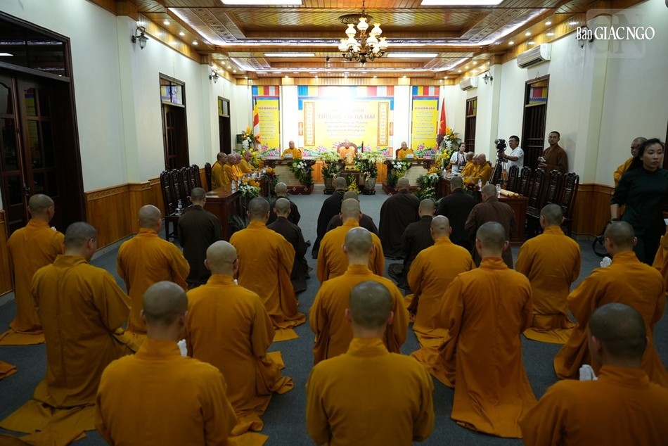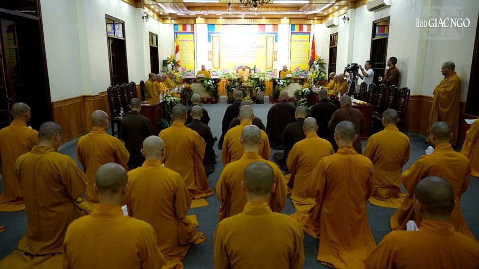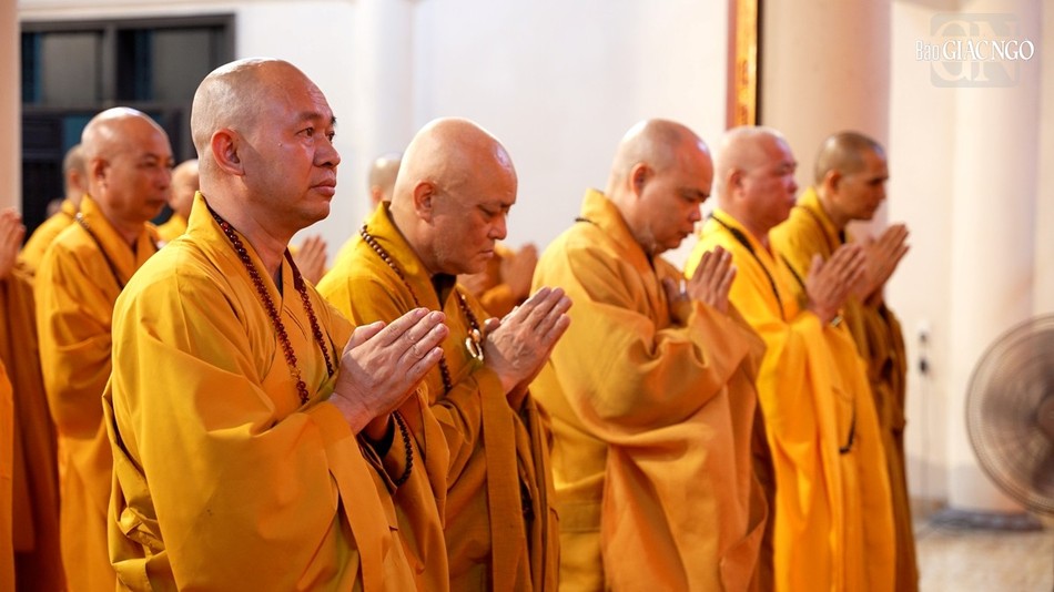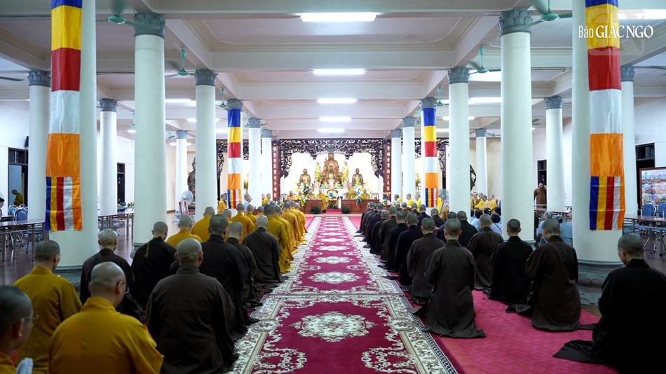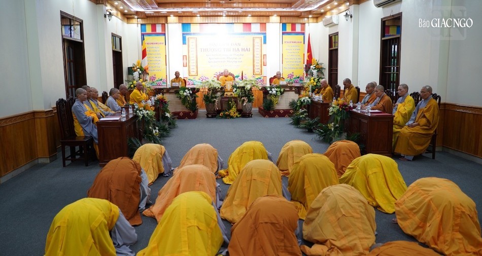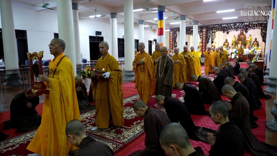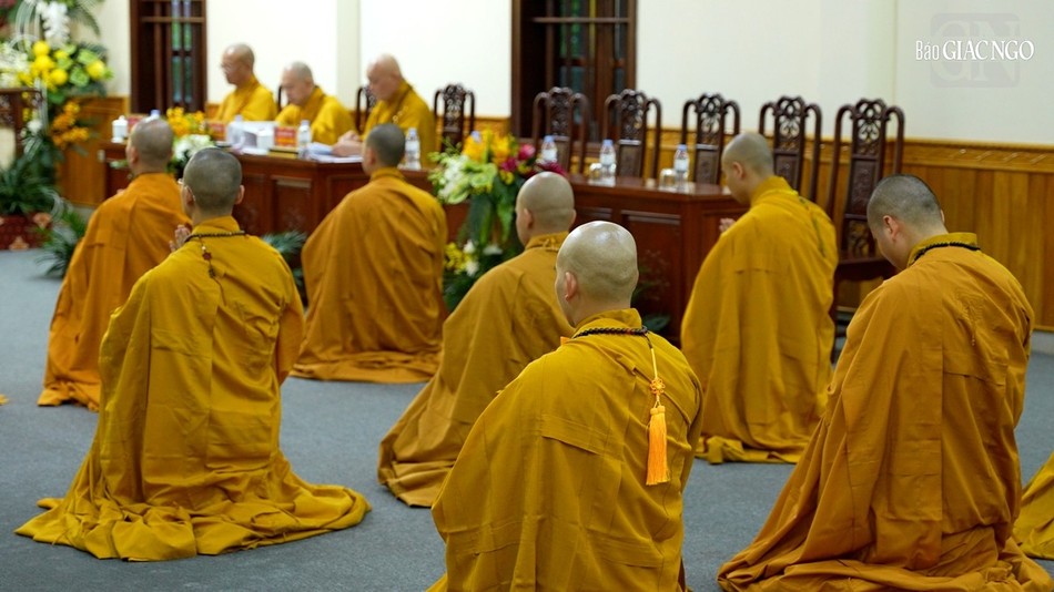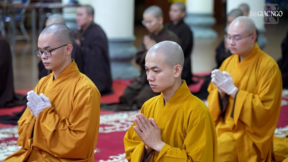| Hội đồng Giới sư Tăng, Ni, các nghiệp sư, giới tử Đại giới đàn Trí Hải Phật lịch 2566 (2023) do Ban Trị sự GHPGVN tỉnh Nam Định tổ chức ở Trung tâm Phật giáo Trúc Lâm Thiên Trường - Ảnh: Tuấn Anh/BGN |