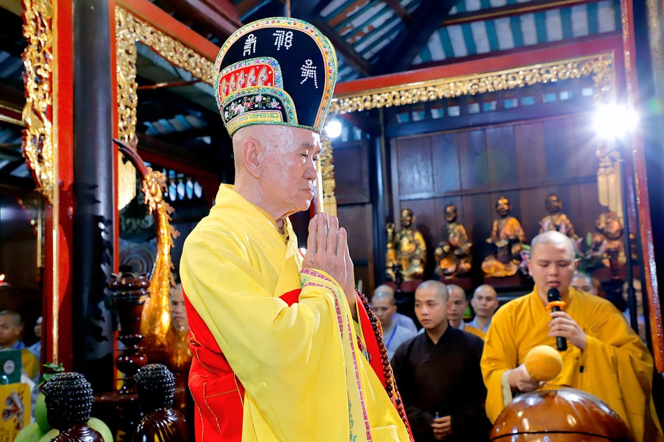 Tại đây, Hòa thượng Thích Huệ Thông, Phó Chủ tịch Hội đồng Trị sự, Trưởng ban Trị sự GHPGVN tỉnh Bình Dương, Trưởng ban Ban Kiến đàn cùng chư Tăng hướng dẫn giới tử Tăng vân tập tại Tổ đường, đảnh lễ chư vị Tổ sư và niêm hương bạch Phật. Sau đó, Ban Nghi lễ cử hành nghi thức khai chung bảng.