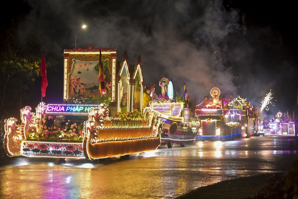 Với tinh thần phát tâm phụng sự trong mùa Phật đản, các cơ sở tự viện đã thiết trí những chiếc xe hoa rực rỡ xoay quanh các chủ đề ý nghĩa về cuộc đời Đức Phật. Những chiếc xe ô tô gia đình của quý Phật tử cũng thiết trí tôn tượng Đản sinh, cờ, hoa rất đẹp mắt tháp tùng cùng đoàn diễu hành.
