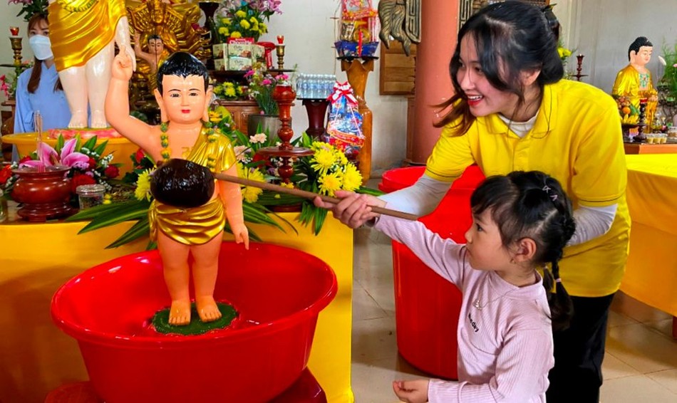 Đoàn kiệu hoa rước Đức Phật tuy chỉ diễn ra trong khuôn viên chùa quê vùng sâu của Đắk Nông nhưng lòng hân hoan của mọi người thì không sao diễn tả hết. Đoàn thanh thiếu niên Phật tử cung rước Đức Phật trên kiệu hoa xinh xắn, nối sau là hai hàng dài, mỗi bạn mỗi lẵng hoa nhỏ có hình ảnh Đức Phật sơ sinh, cuối đoàn là đạo tràng Phật tử tay cầm cờ Phật giáo tung bay.
