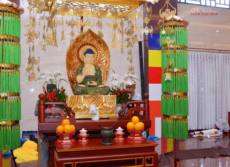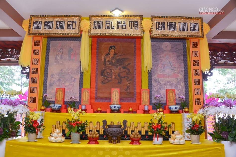 Phóng viên Giác Ngộ Online ghi nhận không gian trang nghiêm vào chiều nay, 17-8 của đàn tràng Việt Nam Quốc Tự trước ngày chính thức diễn ra lễ khai mạc: