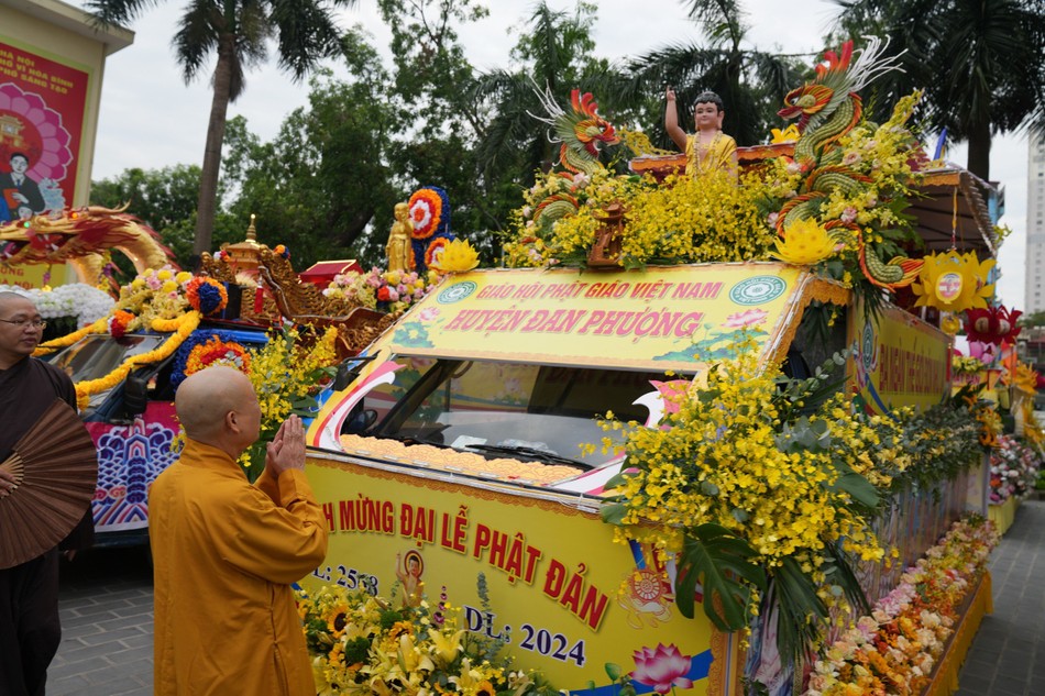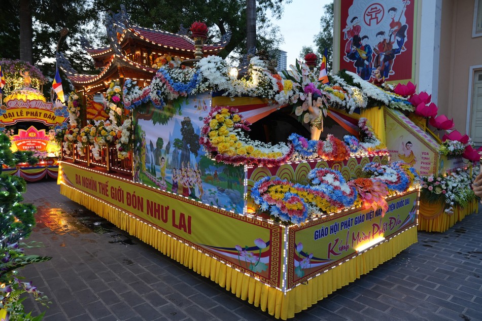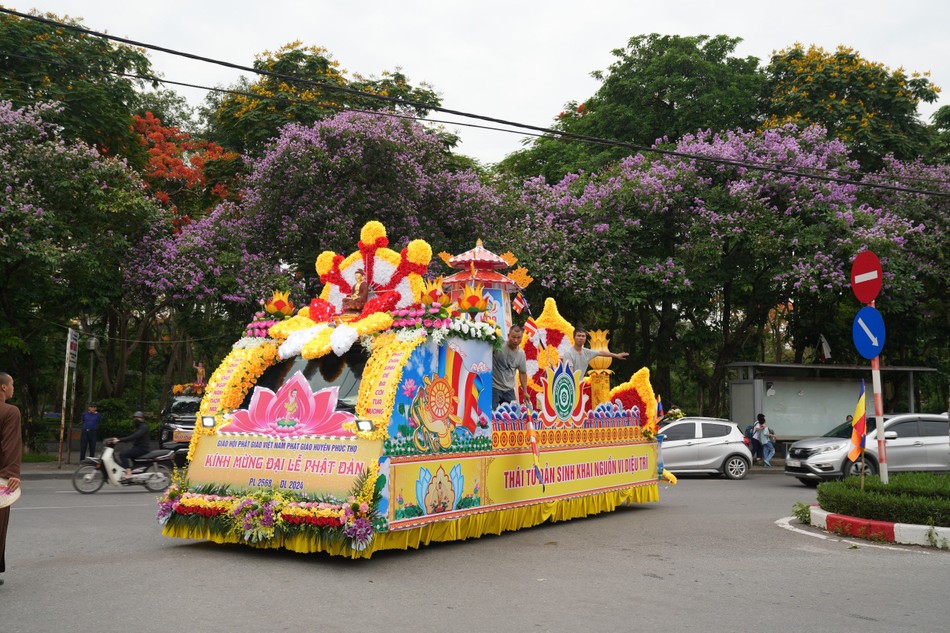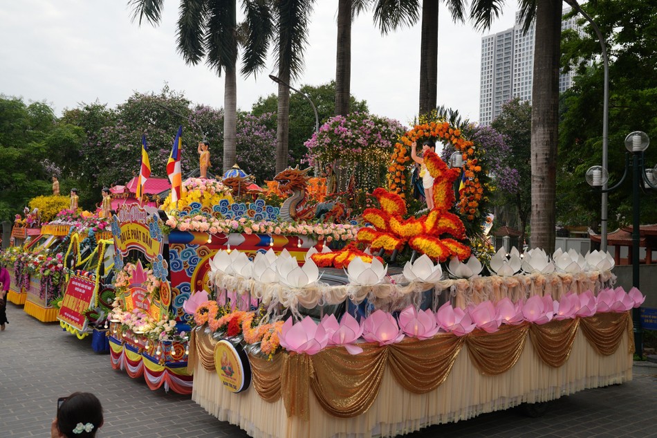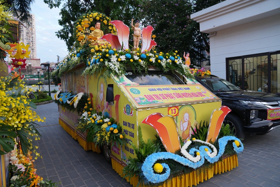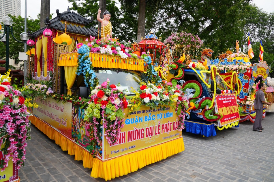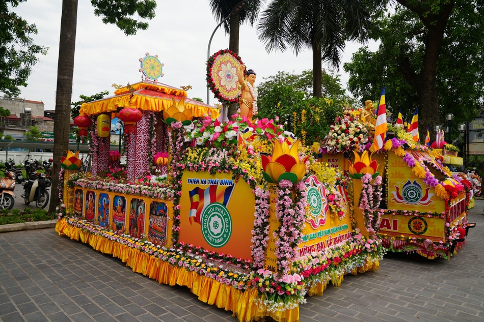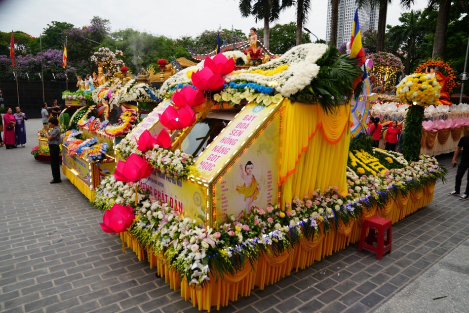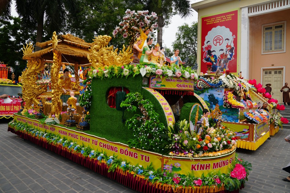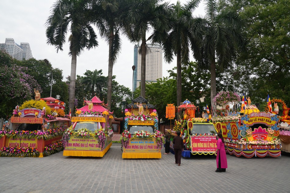 Theo đó, có 30 chiếc xe hoa của 30 đơn vị Phật giáo quận, huyện, thị xã trên địa bàn TP.Hà Nội đã tham gia diễu hành, bắt đầu từ Trung tâm Văn hóa Thủ đô (số 7 đường Phùng Hưng, P.Văn Quán, Q.Hà Đông).