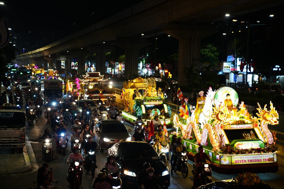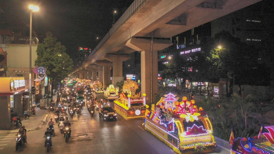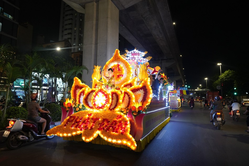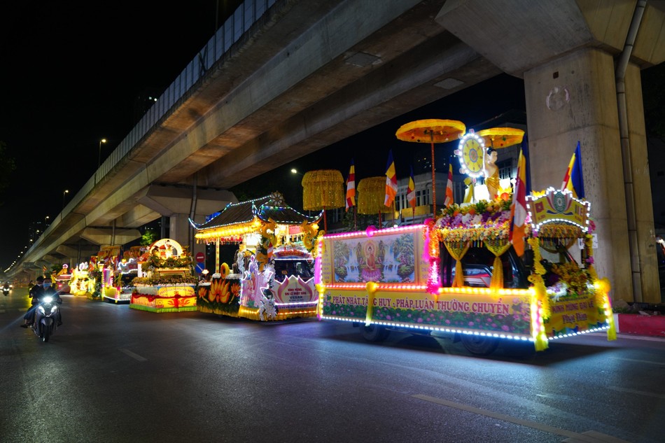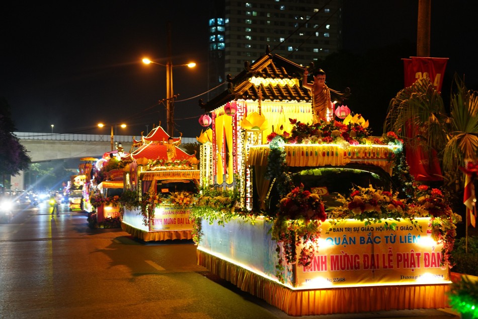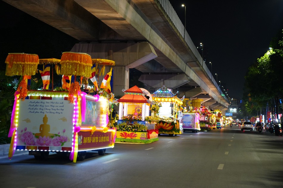 GNO - 20 giờ tối 13-4-Giáp Thìn (20-5), Ban Trị sự GHPGVN TP.Hà Nội đã tổ chức diễu hành xe hoa qua các phố phường ở Thủ đô cúng dường Phật đản Phật lịch 2568.