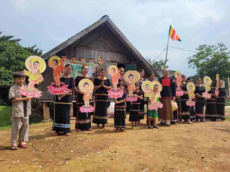 Theo đó, bà con dân tộc M’Nông đã được hướng dẫn thiết lập vườn Lâm-tỳ-ni kính mừng Tuần lễ Phật đản, thăm hỏi bà con con Phật tử cao niên, trao quà từ thiện, thuyết giảng ý nghĩa Phật đản, tổ chức ẩm thực chay thiết đãi cả buôn làng.