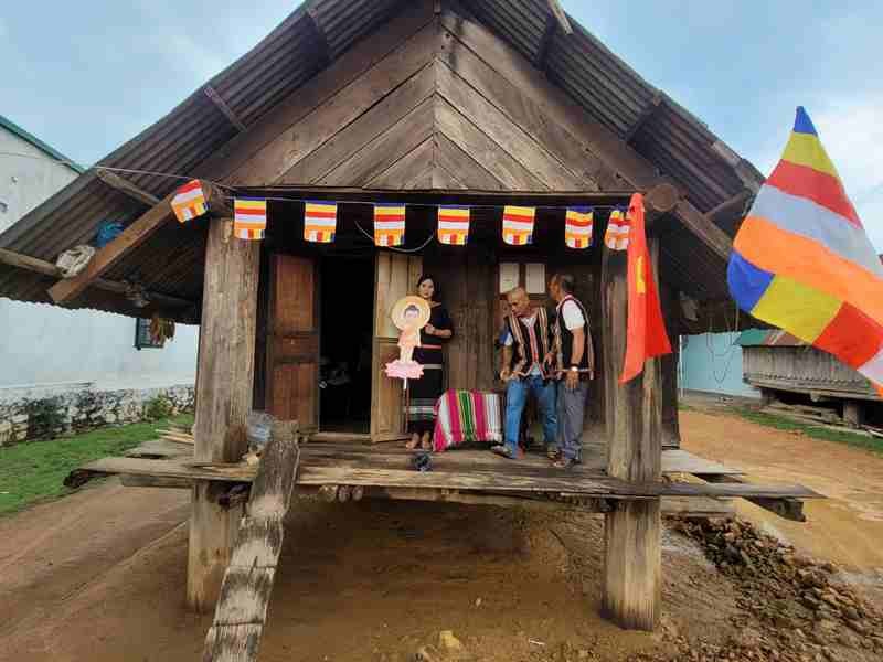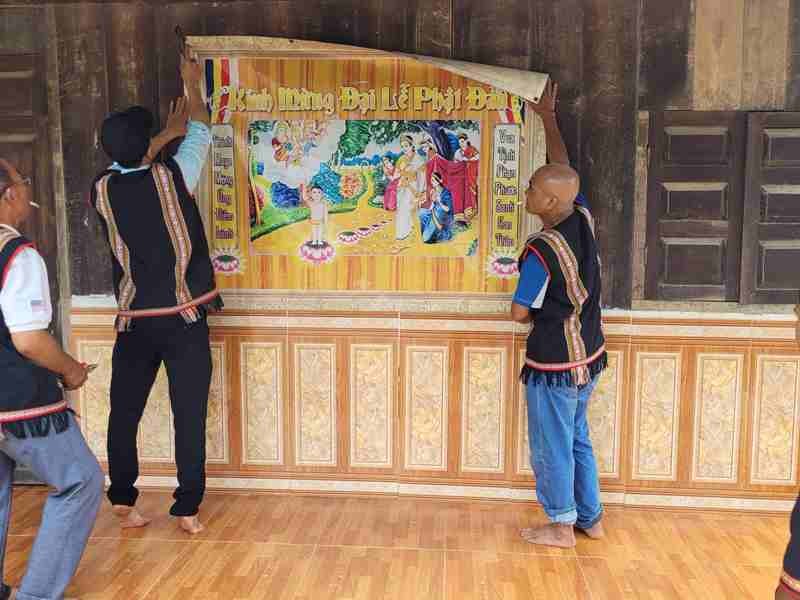 GNO - Đại đức Thích Nhuận Độ, Phó Phân ban Hướng dẫn Phật tử dân tộc T.Ư, trụ trì chùa Quảng Trạch (H.Lắk, tỉnh Đắk Lắk) hướng dẫn bà con dân tộc M’Nông tại buôn Tu Sria, xã Nam Ka thiết trí lễ đài tại tư gia, đón Đức Phật đản sinh về buôn làng.