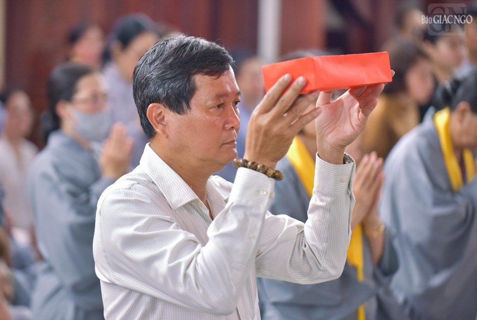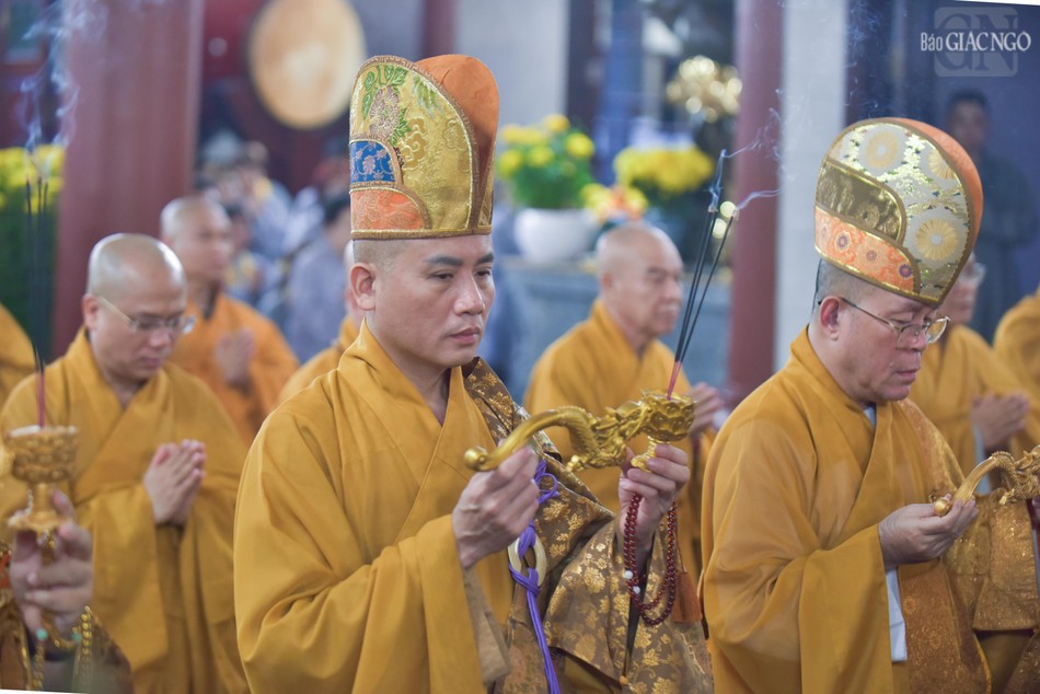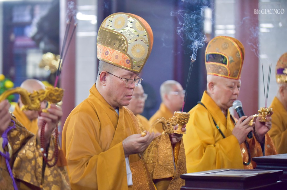 Hòa thượng Thích Lệ Trang, Phó Chủ tịch Hội đồng Trị sự, Trưởng ban Nghi lễ T.Ư, Trưởng ban Trị sự Phật giáo TP.HCM, Trưởng ban Quản trị chùa Phổ Quang đương vi đệ nhất đàn chủ; cùng với sự tham dự của chư tôn đức Ban Trị sự GHPGVN TP.HCM, Ban Trị sự Phật giáo Q.Tân Bình, Ban Quản trị chùa Phổ Quang đã thực hiện nghi thức nhiễu đàn, cử nhành dương sái tịnh đàn tràng.