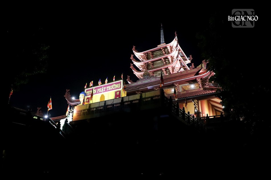 GNO - Tối 18-11 (6-10-Quý Mão), ngày thứ hai của Đại giới đàn Bửu Huệ Phật lịch 2567, Ban Điều hành, Ban Quản giới tử giới trường Ni - chùa Thanh Tâm đã hướng dẫn giới tử thực hiện nghi thức hô canh, tuần chiếu trong khuôn viên đại giới.