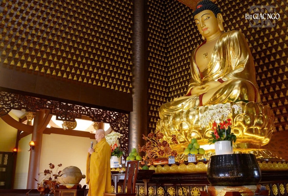 Hòa thượng Thích Lệ Trang, trụ trì chùa Huê Nghiêm đã có thời pháp thoại, giảng về ý nghĩa thiết thực của việc quy y Phật, Pháp, Tăng; thọ trì 5 giới đối với đời sống của người Phật tử tại gia trong việc kiến tạo nền tảng hạnh phúc gia đình, xây dựng cộng đồng và quê hương đất nước.