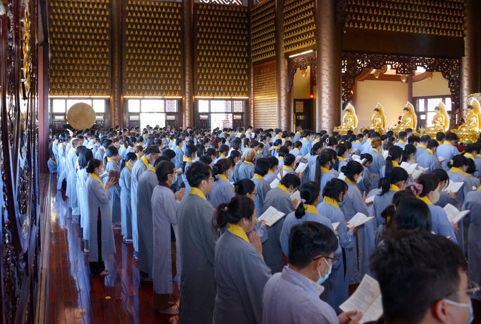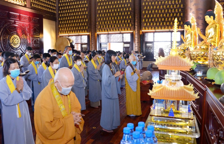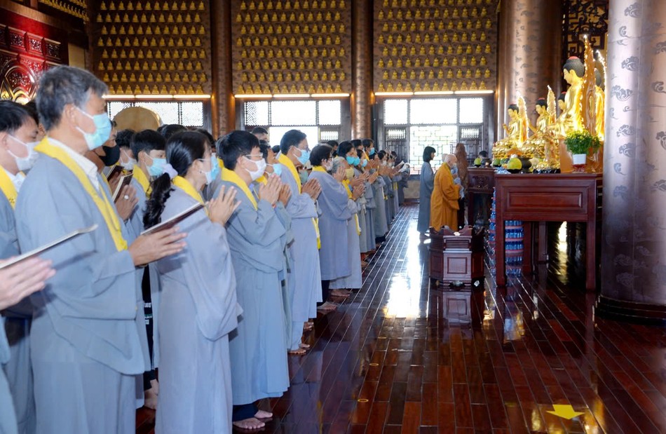 GNO - Hôm nay, 9-2 (12 tháng Giêng năm Ất Tỵ), hàng trăm người đã tham dự lễ phát nguyện quy y Tam bảo, trở thành Phật tử, tại chùa Huê Nghiêm (TP.Thủ Đức, TP.HCM) với sự chứng minh của Đại lão Hòa thượng Thích Trí Quảng, phương trượng chùa.