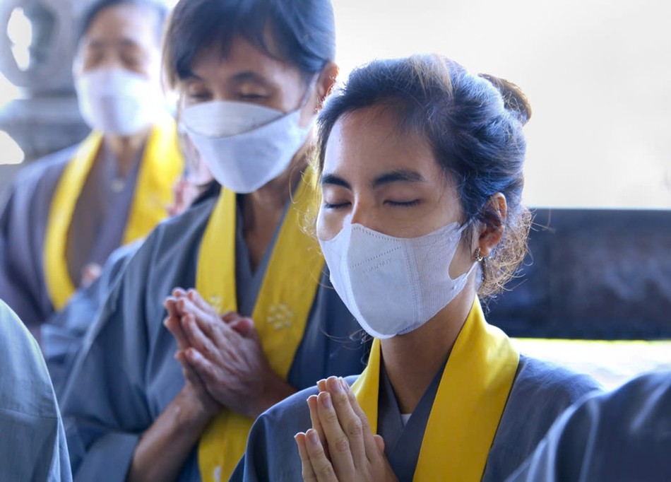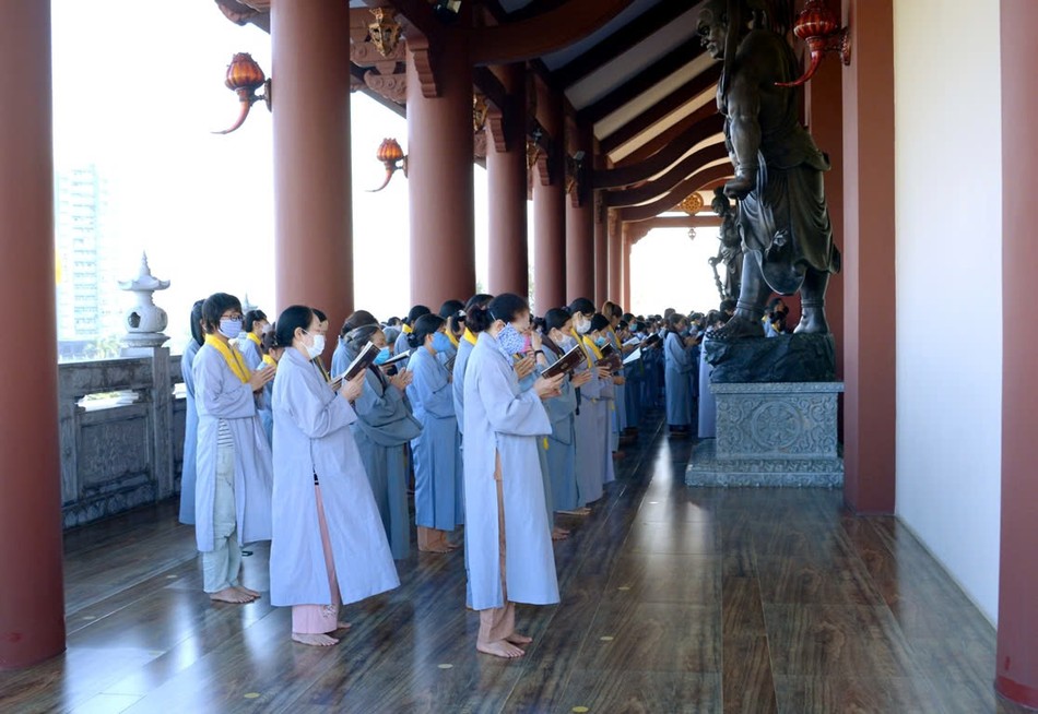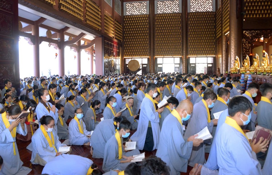 Sau lễ quy y, chư Tăng đã hướng dẫn đạo tràng trì tụng khóa lễ cầu nguyện đầu năm.
